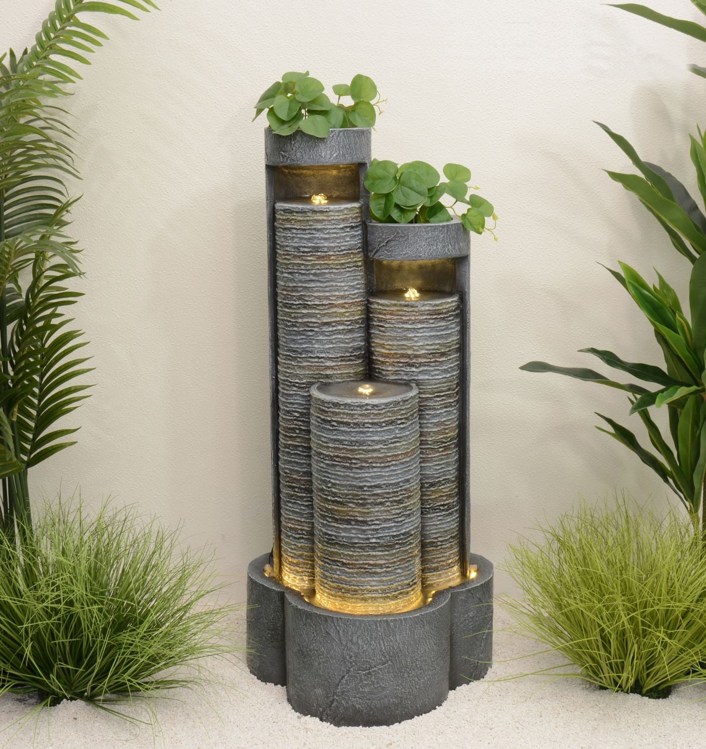 This elegant water feature has been exquisitely crafted and cleverly disguised to appear as stone, but is actually made from high quality material, which is lightweight, durable, and long-lasting. This allows for easy assembly and installation, despite its height, while at the same time ensuring that it will endure our fickle British weather.