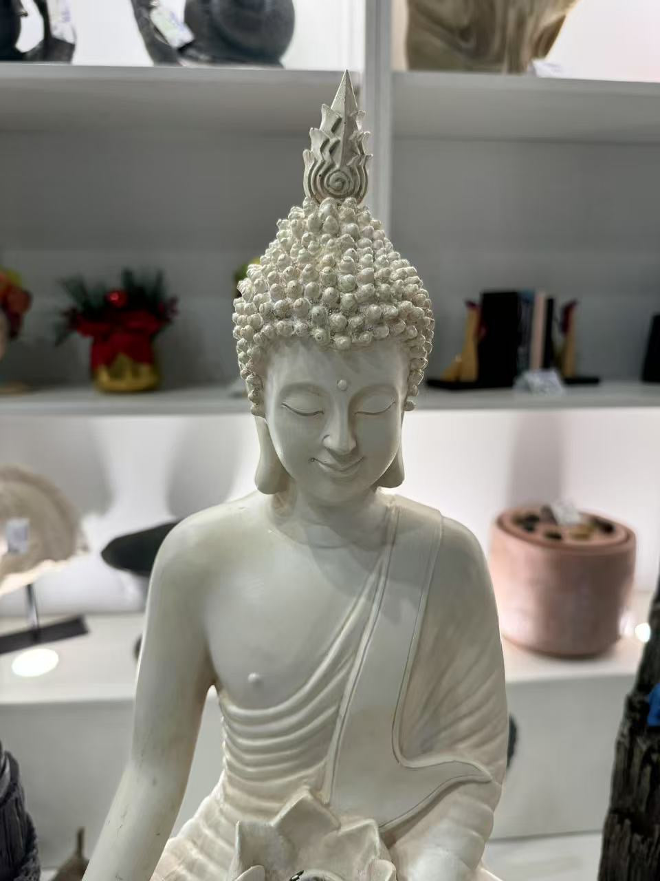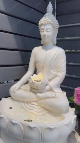 Pataya a depiction of a Zen Fountain with attention to details featuring a serene White Buddha Water Feature.