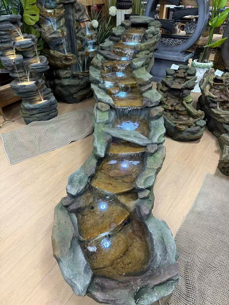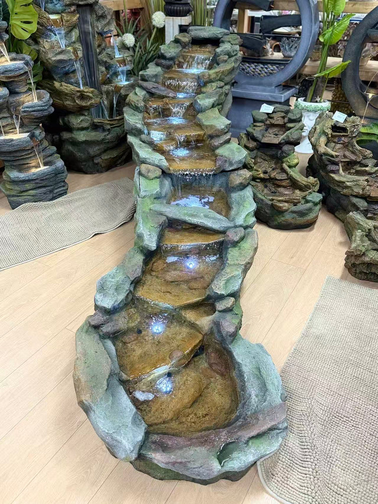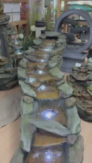Transform your garden into a natural haven with our Natural range of water features. With low voltage, inbuilt LED lights this gorgeous water feature can be admired at any time of day or night. The organic looking Rock Wood finish of this water feature gives it a wild but charming appeal perfect for making any outdoor space feel more like a private oasis.