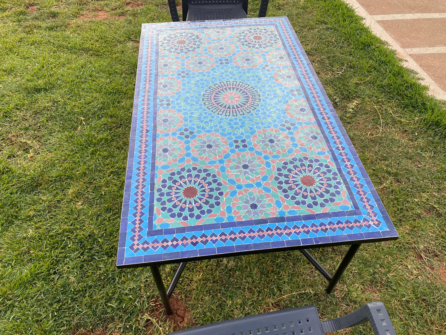 this beautiful Mosaic table it s can be Rectangular, Square , Round. it can provide a stylish and modern look to your space it for outdoor/indoor made from mosaic tiles and iron