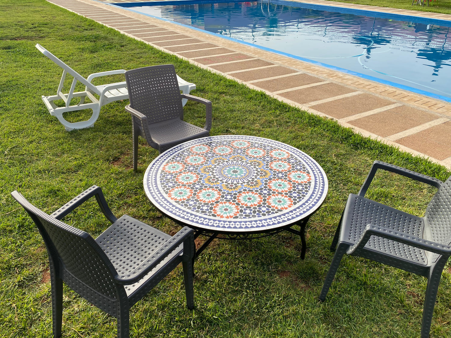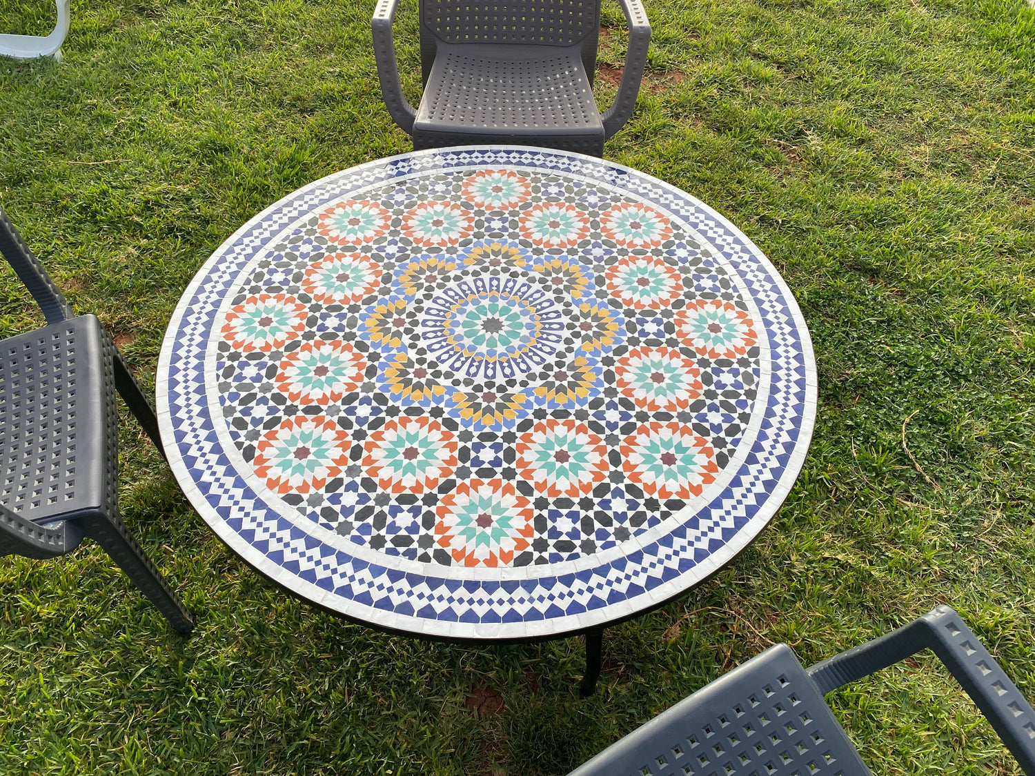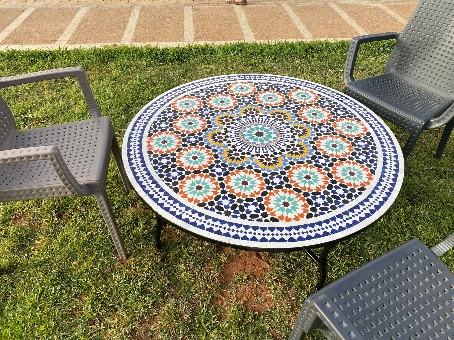 Table round made from mosaic and tiles 100% Handcrafted It for outdoor and indoor, Mosaic table works for beach house too, this beautiful table is Original Moroccan Art , Multi-color .