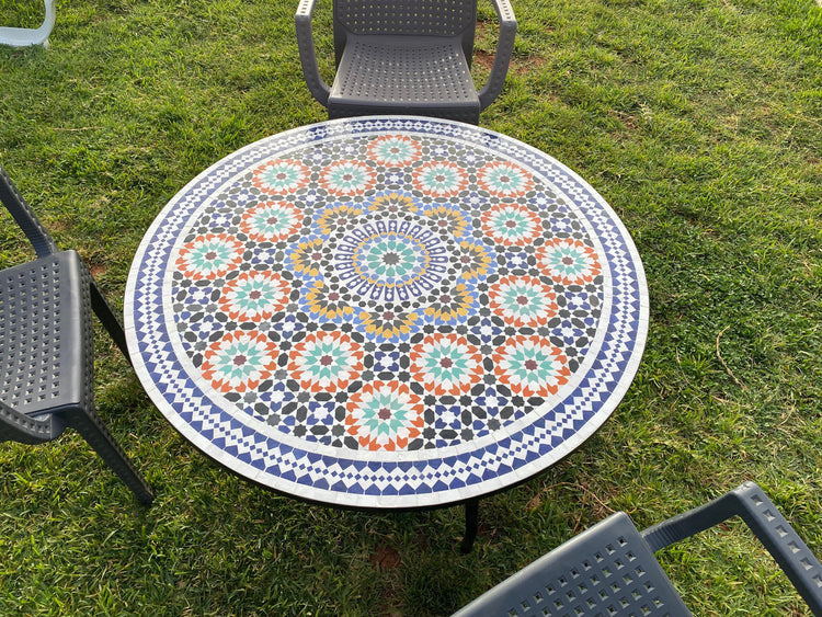 Moroccan dining table round made from mosaic and tiles 100% Handcrafted It for outdoor and indoor, Mosaic table works for beach house too