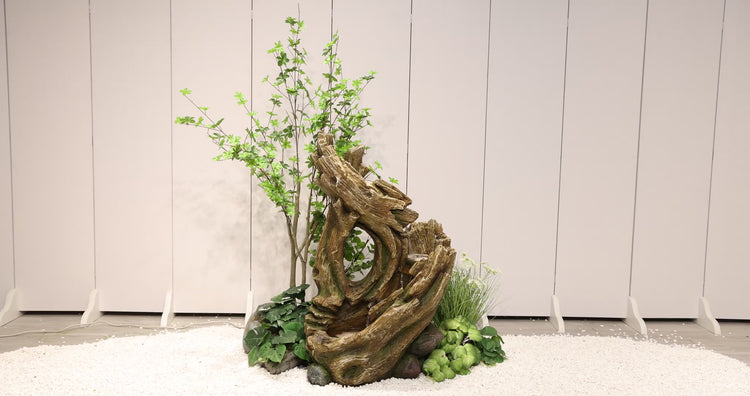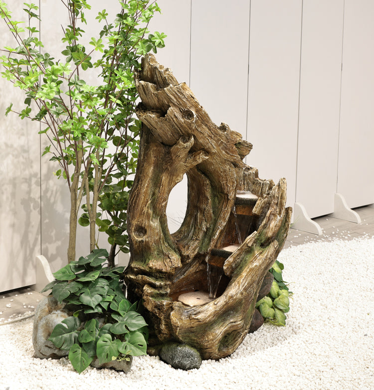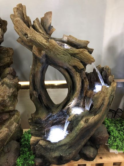 Transform your garden into a natural haven with our Natural range of water features. With low voltage, inbuilt LED lights this gorgeous water feature can be admired at any time of day or night. The organic looking Rock Wood finish of this water feature gives it a wild but charming appeal perfect for making any outdoor space feel more like a private oasis.
