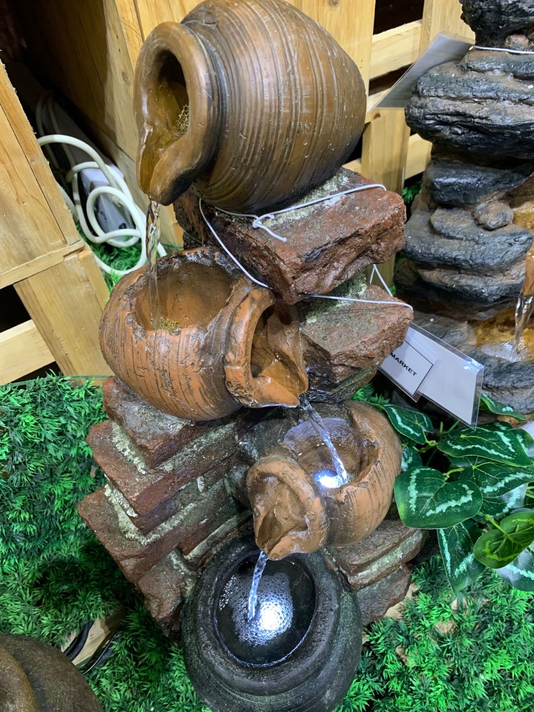 Fountain comes with Multi LED, Large robust water pump, transformer & 10 meter cord.