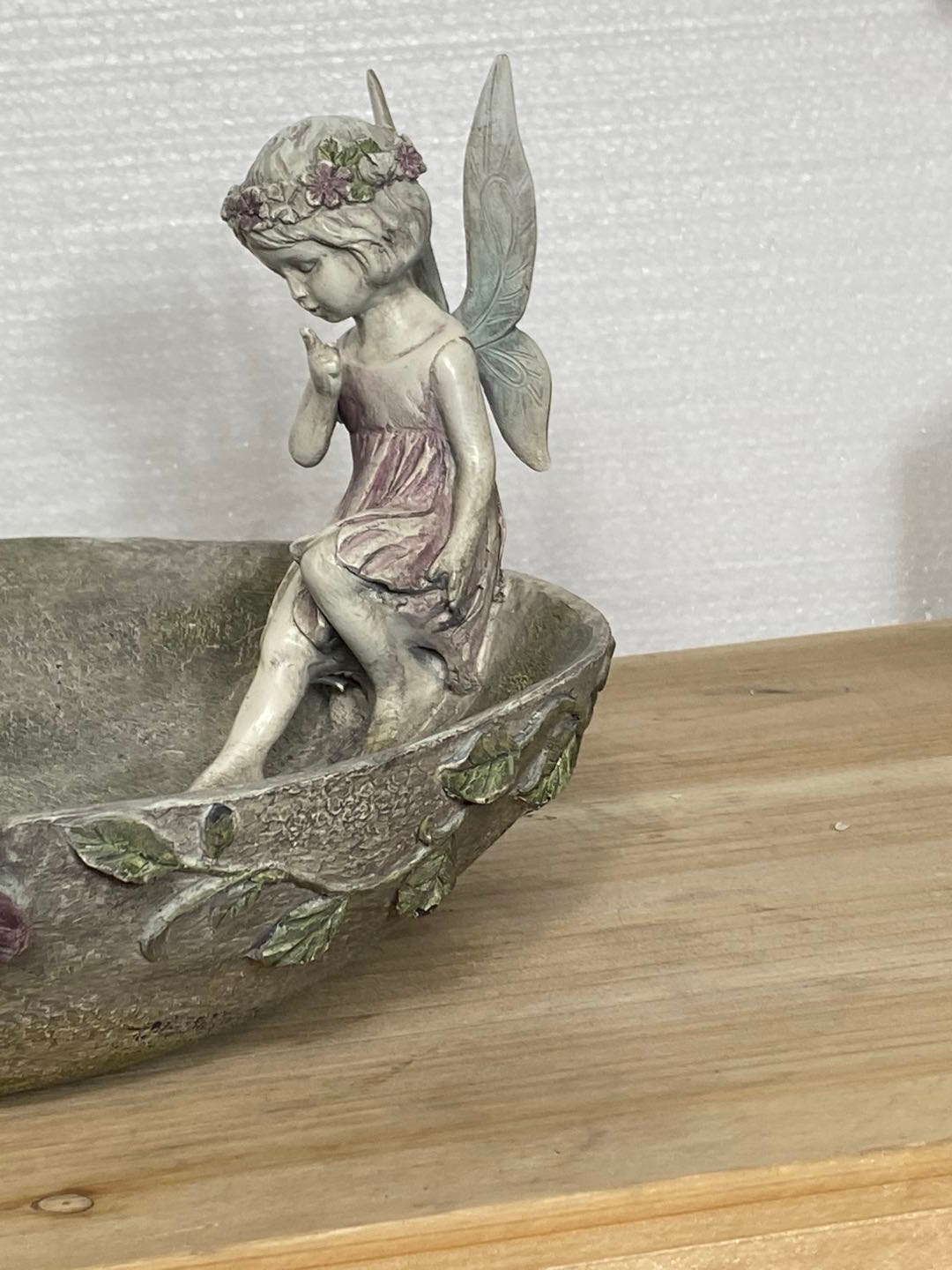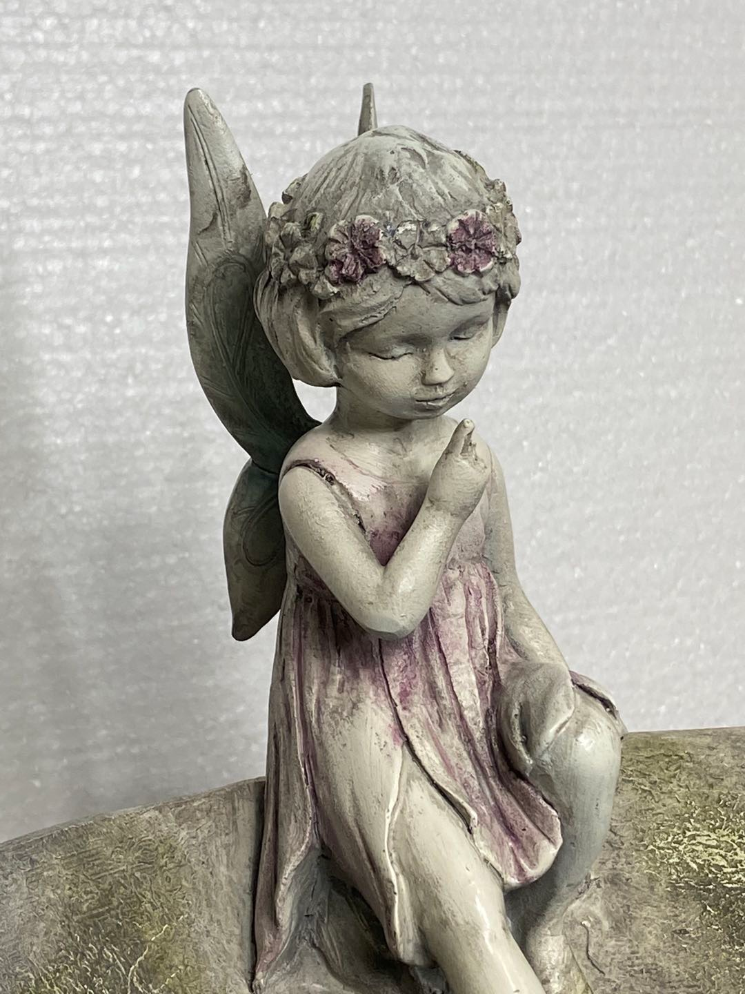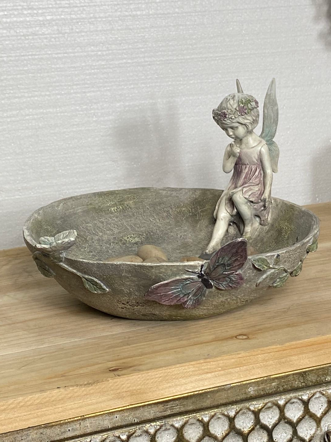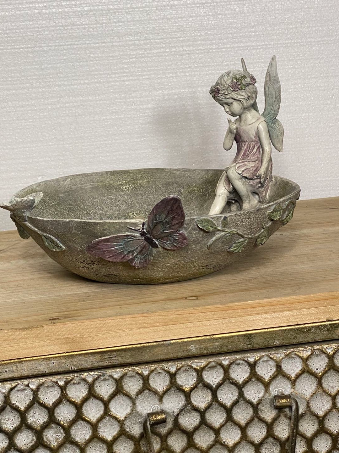 Pixie is an angelic bird feeder / bird bath with butterflies in blue - pink fading colours.
