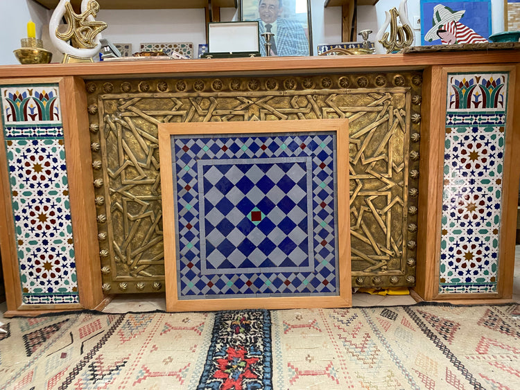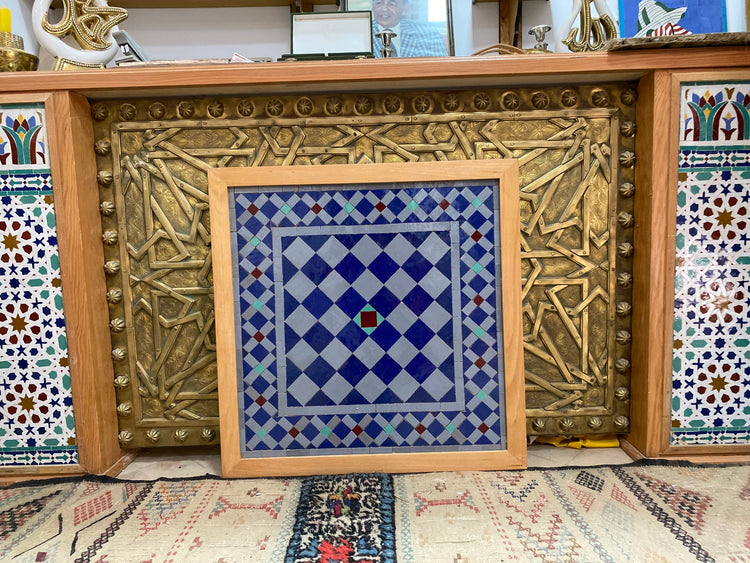 Moroccan mosaic in Alhambra palace mosaic wall hanging with wooden frame , wall decor mosaic art, tiles clay wall art . Alhambra