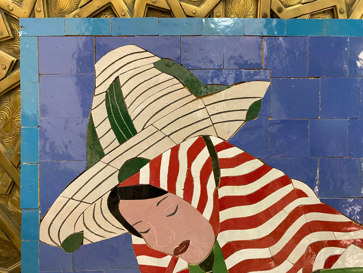 Moroccan mosaic wall hanging with Metal frame, small mosaic pieces Moroccan Woman , wall mosaic decor mosaic art , tiles clay wall art