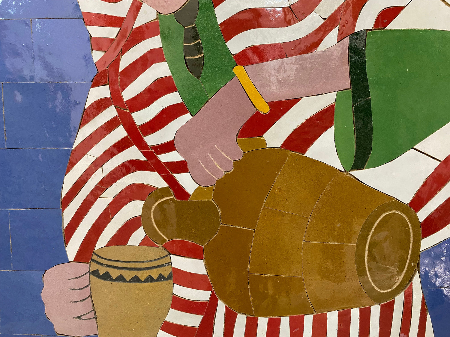 Made from mosaic , tiles , iron