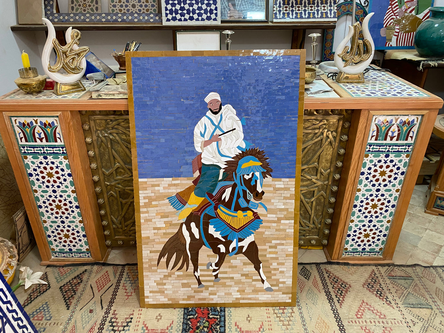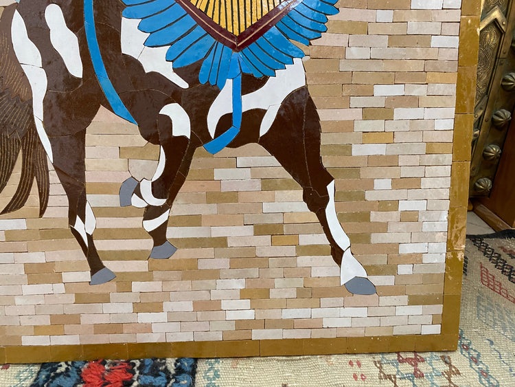 Moroccan mosaic wall hanging with wooden frame, small mosaic pieces horse Fantasia , wall mosaic decor mosaic art , tiles clay wall art