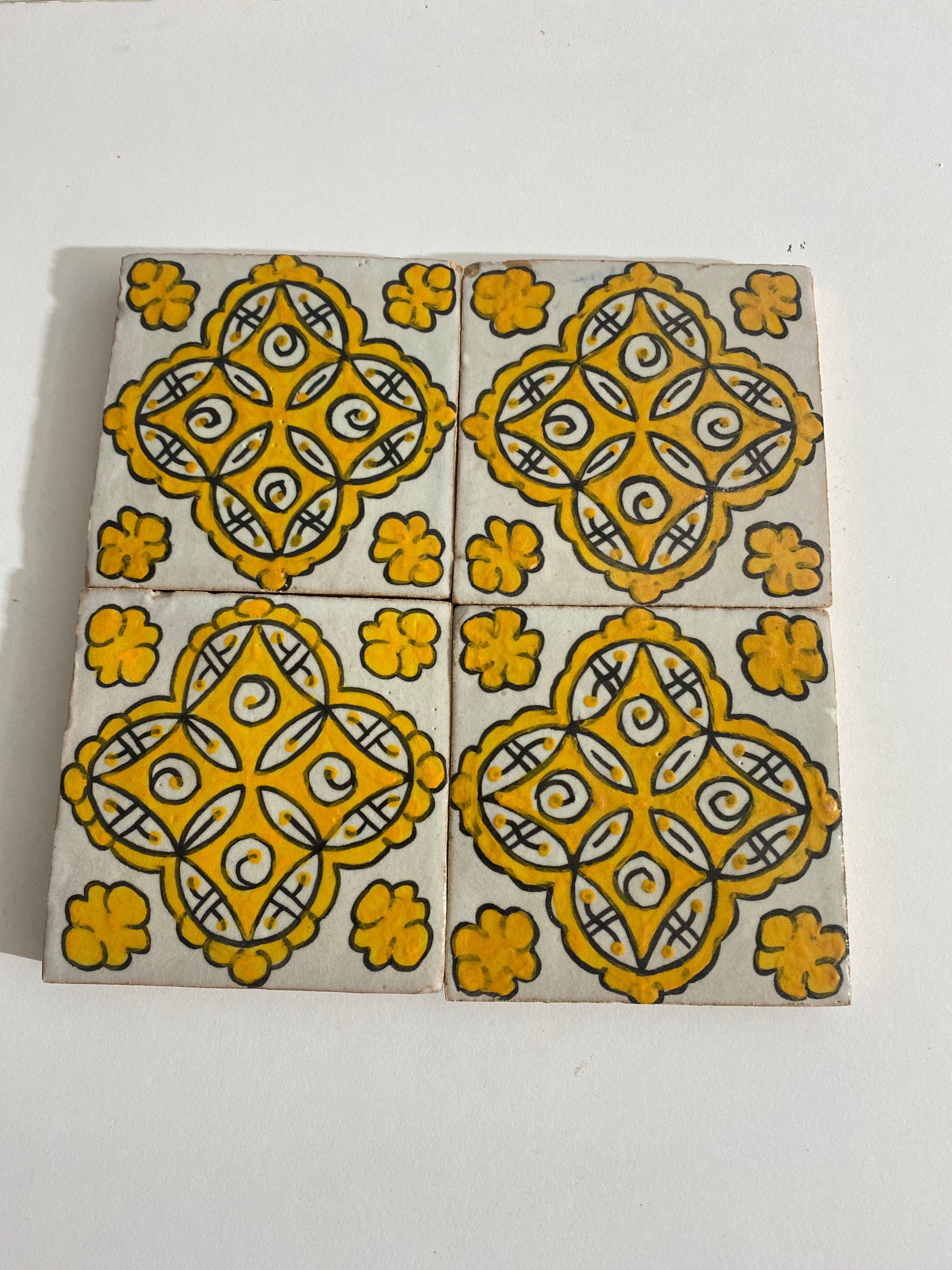 Yellow Ceramic tiles Hand painted tiles 4"x4" 100% for Bathroom Remodeling and kitchen Projects works wall and ground