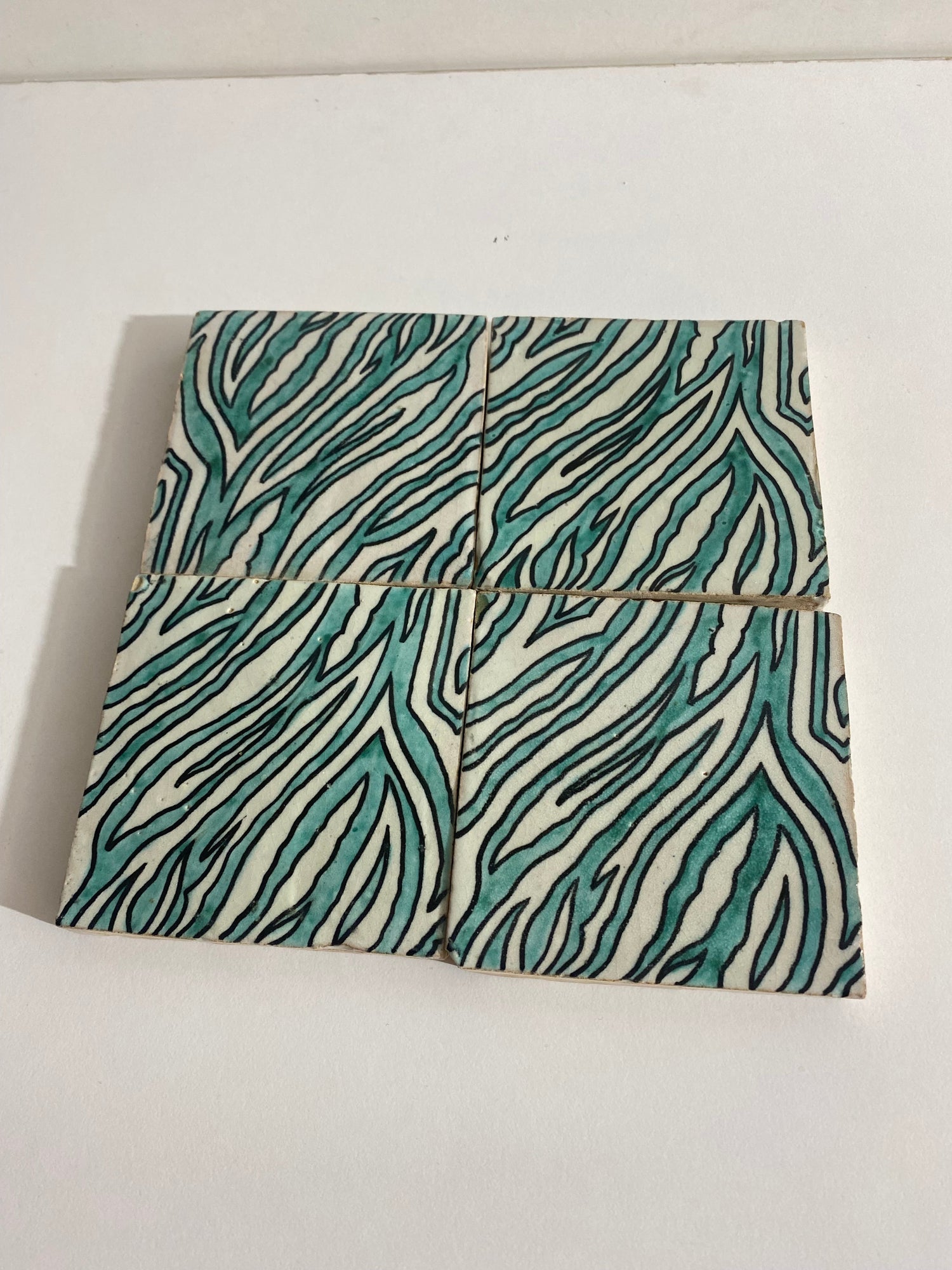 Zebre Ceramic tiles Hand painted 4"x4" 100% Handmade for Bathroom Remodeling and kitchen Projects works wall, ground and pool