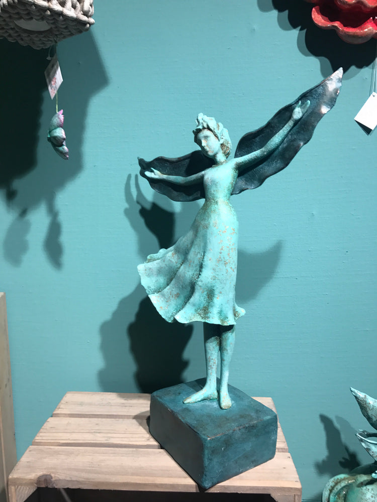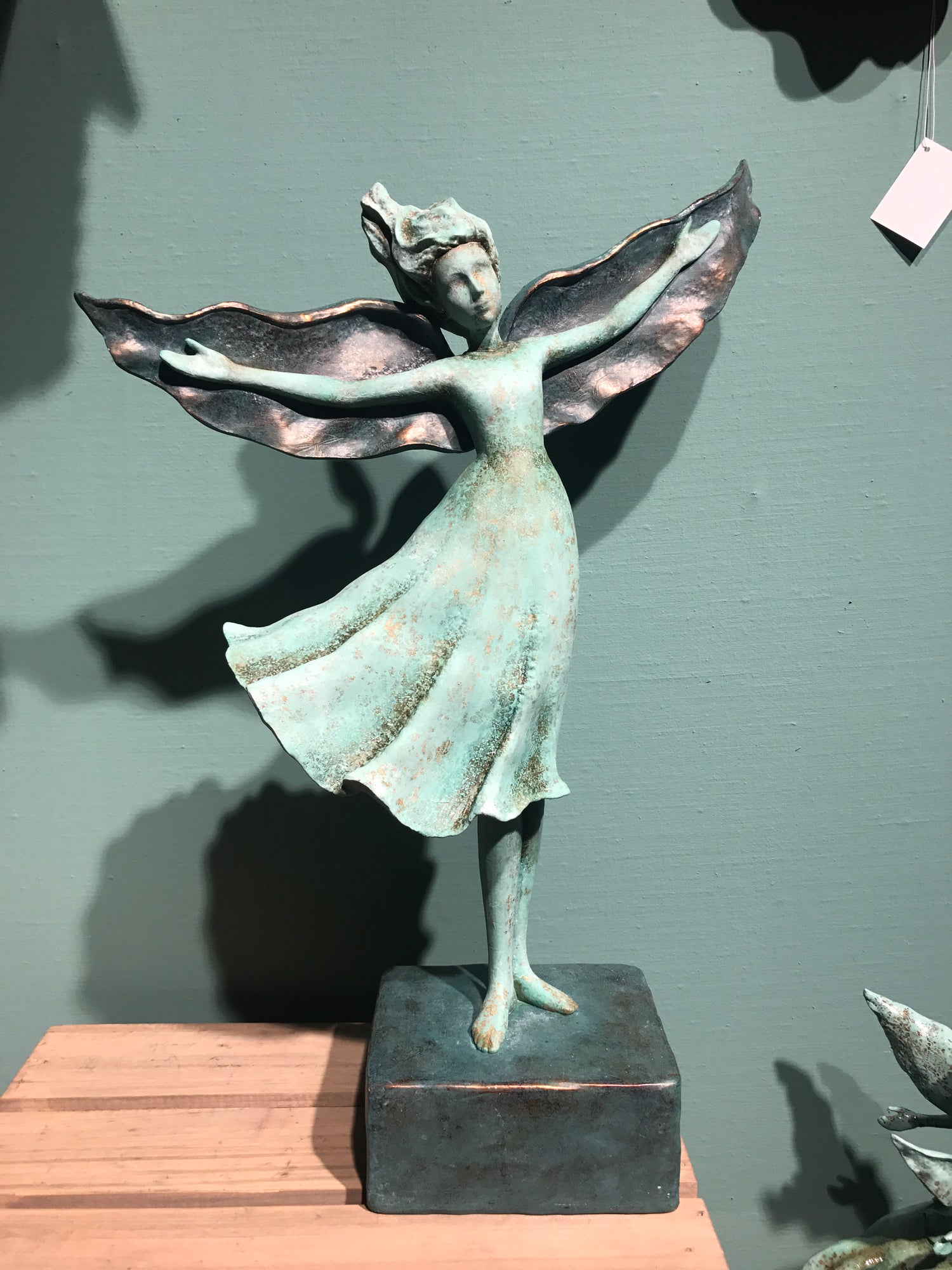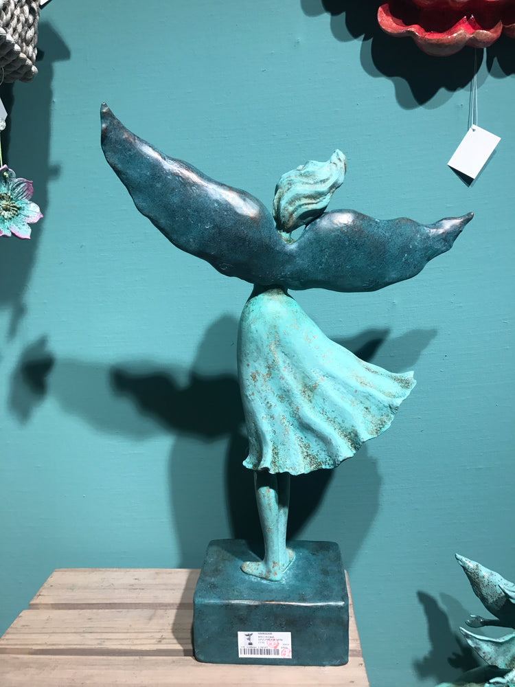 RESIN ANGEL WITH BASE, BRONZE, 32*15.3*49.4CM