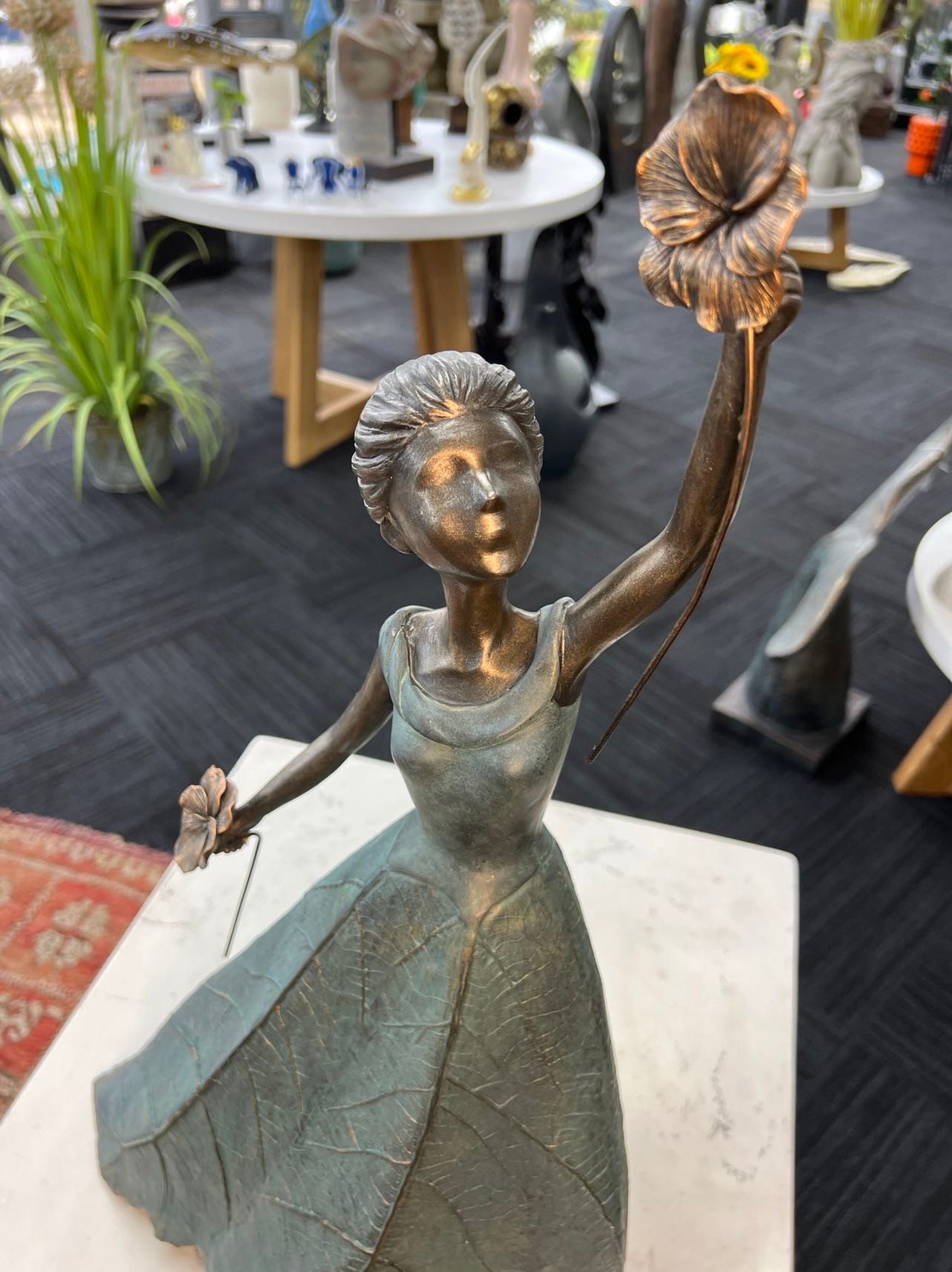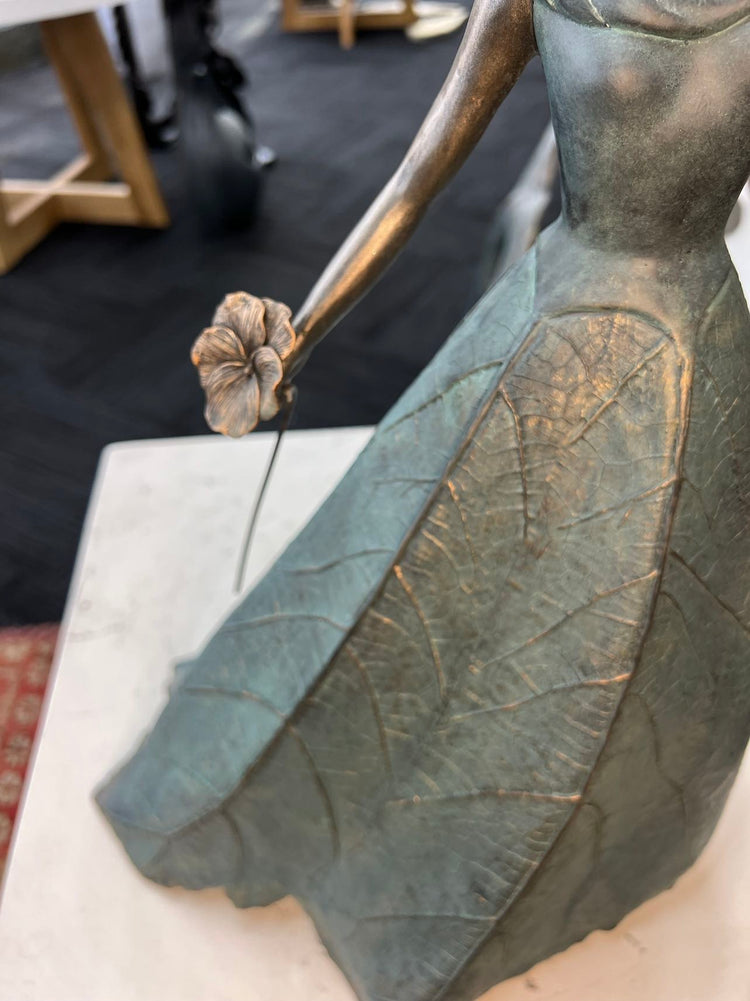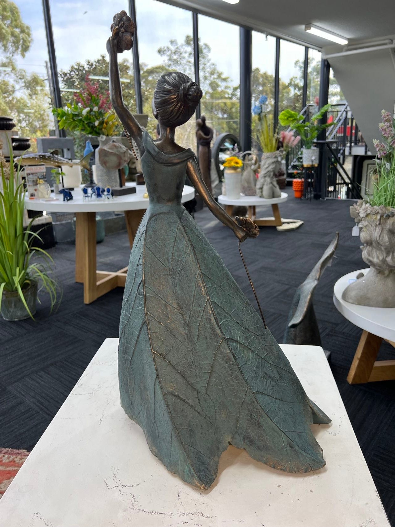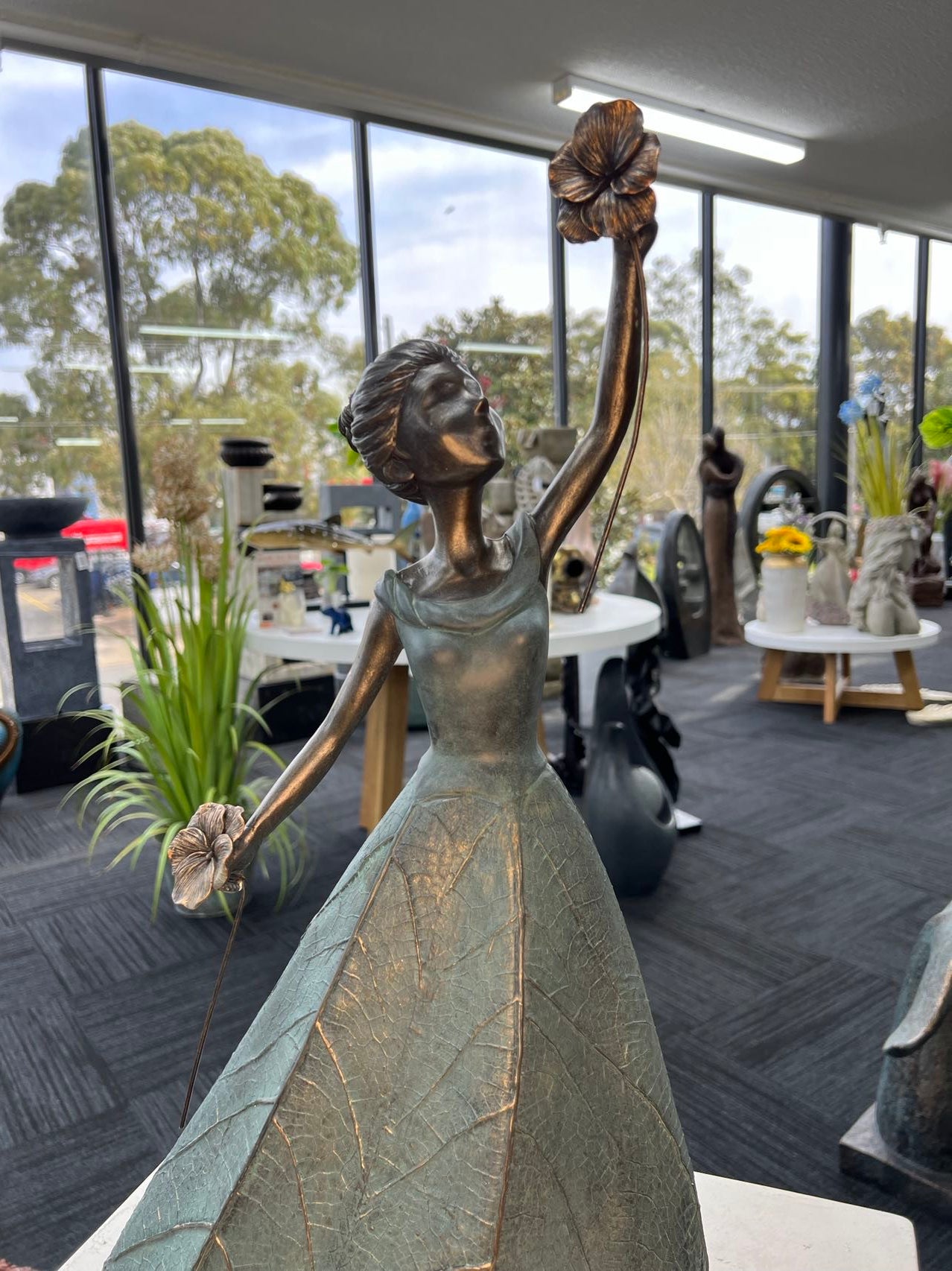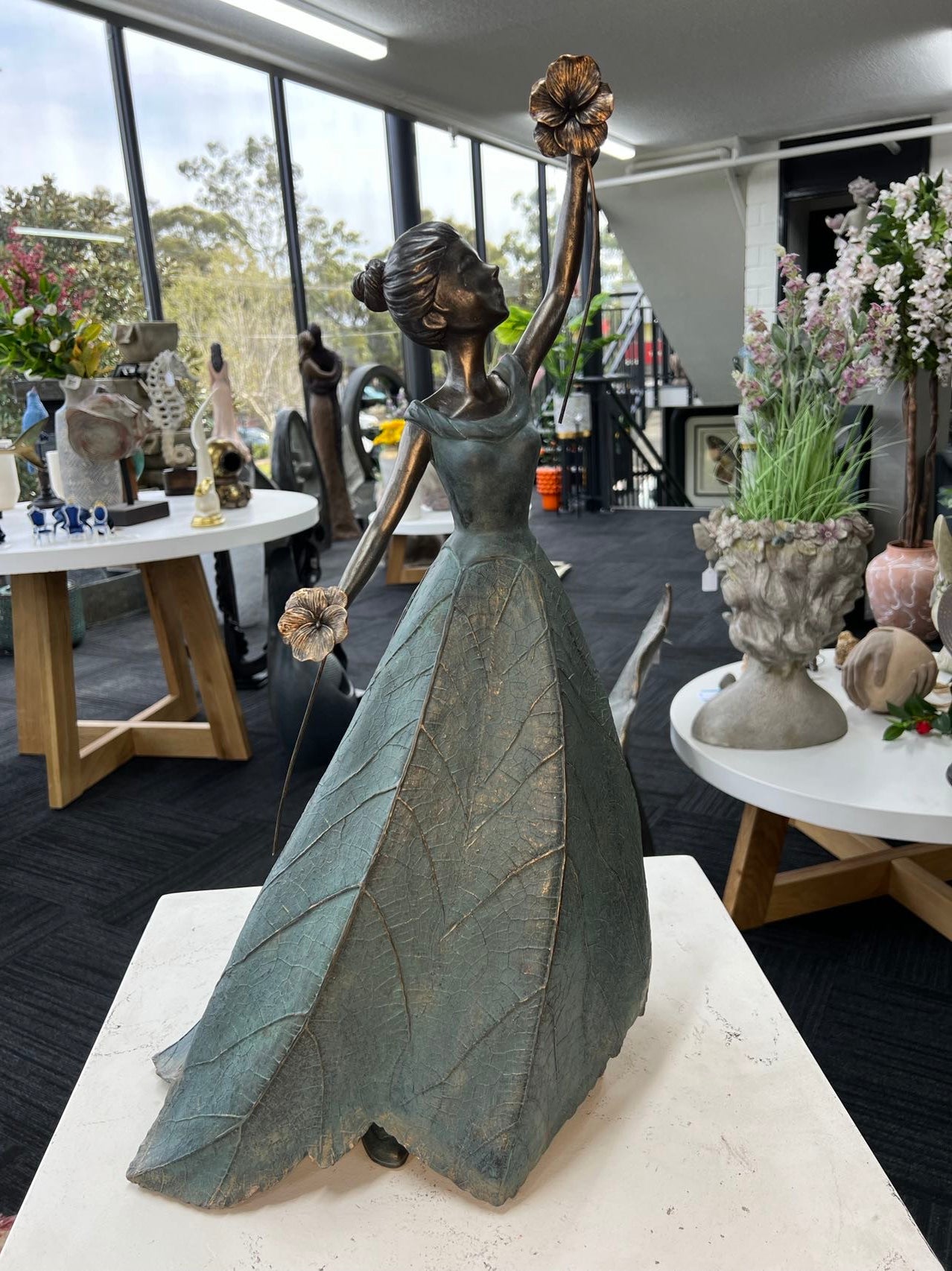 Dimensions: 35 * 27 * 62 H cm, Blue Dress made of leaves / Flowers in copper look & feel.