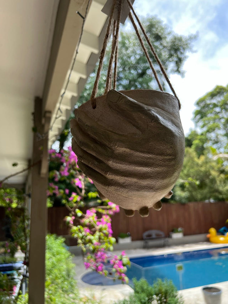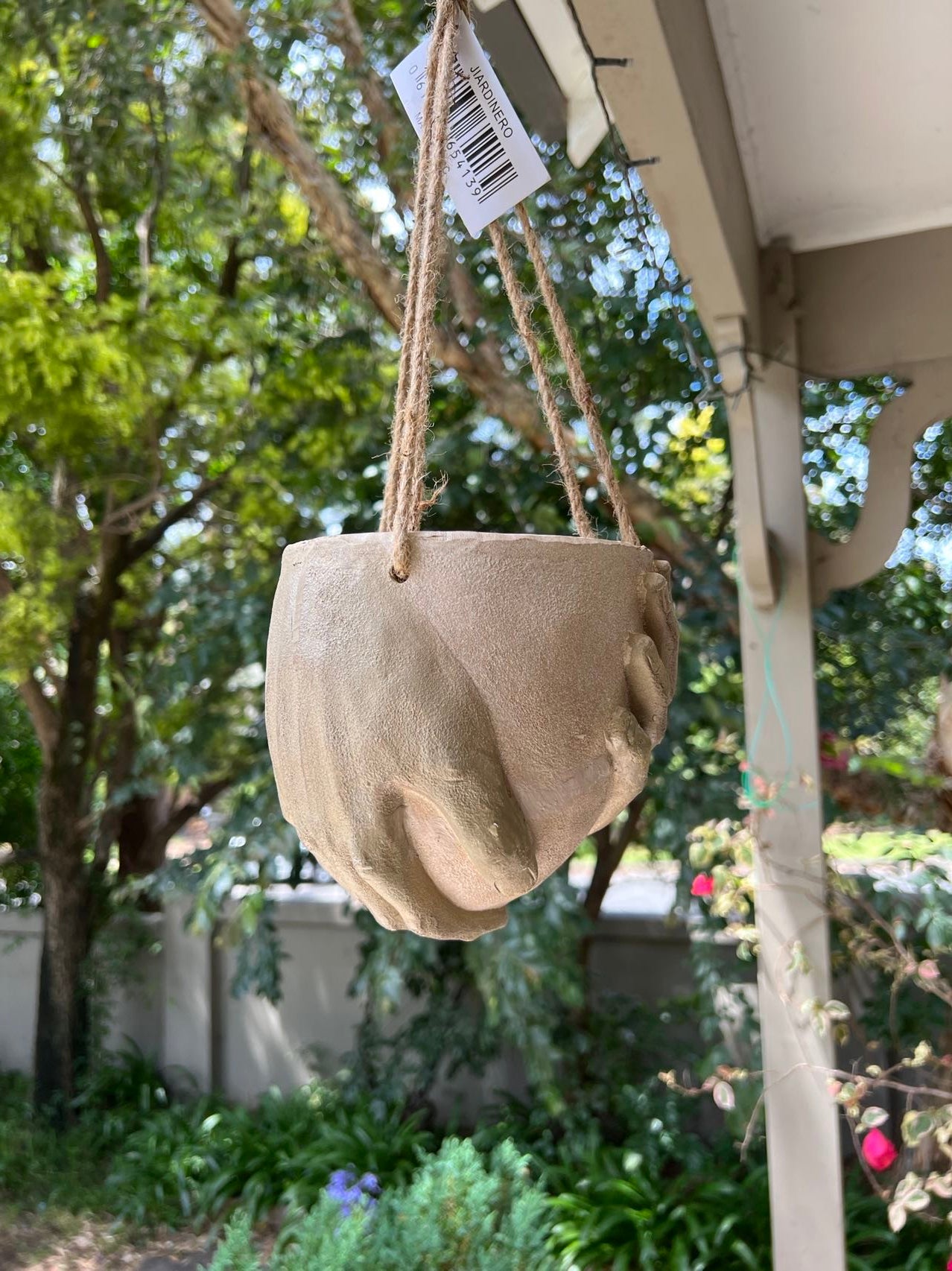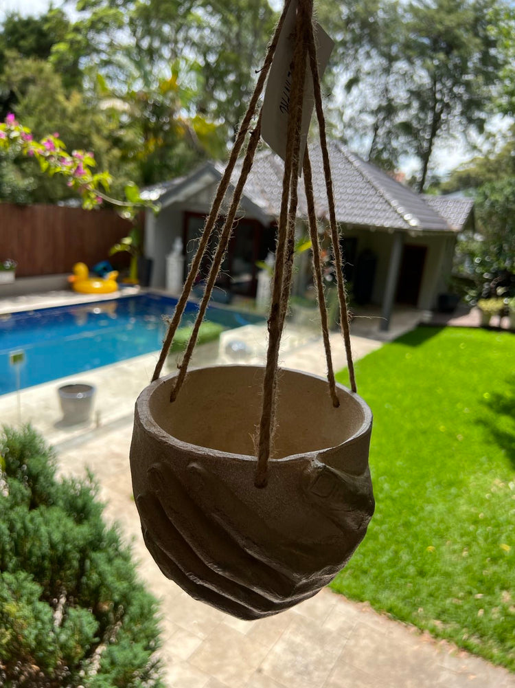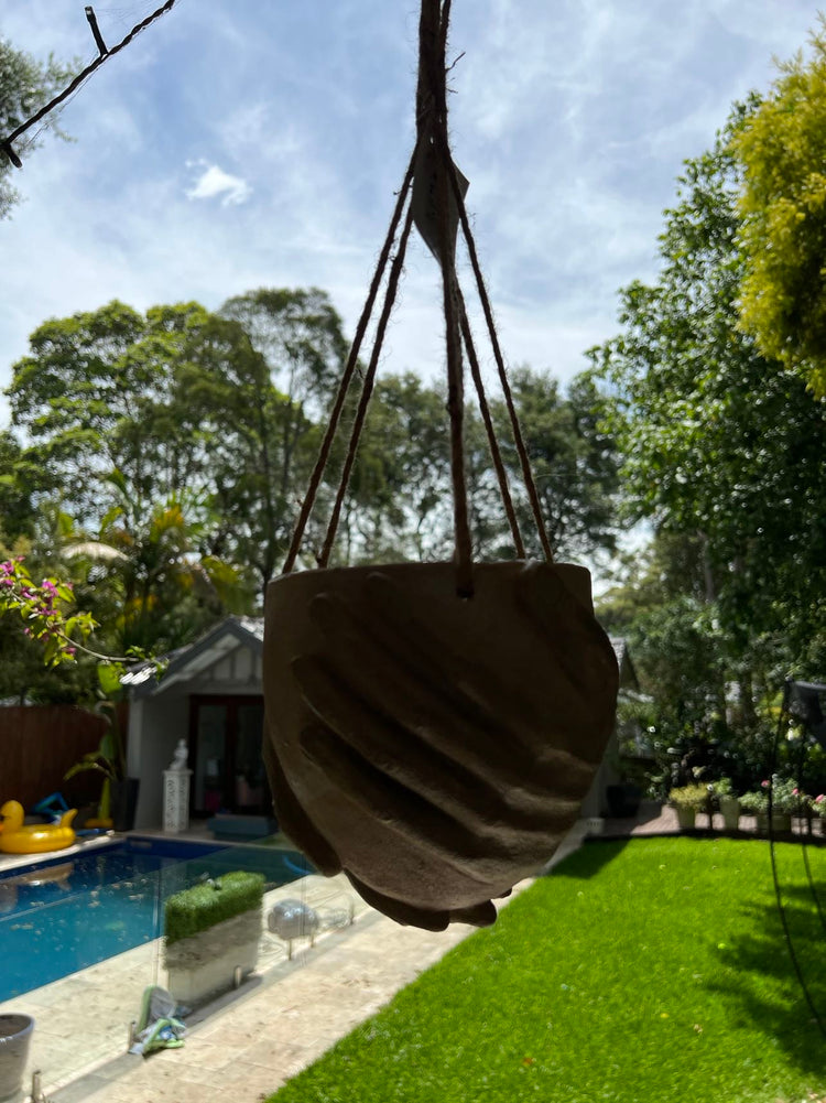 Amazing two hands clay terracotta look & feel hanging planter. Earthy colours with a terracotta Clay effect