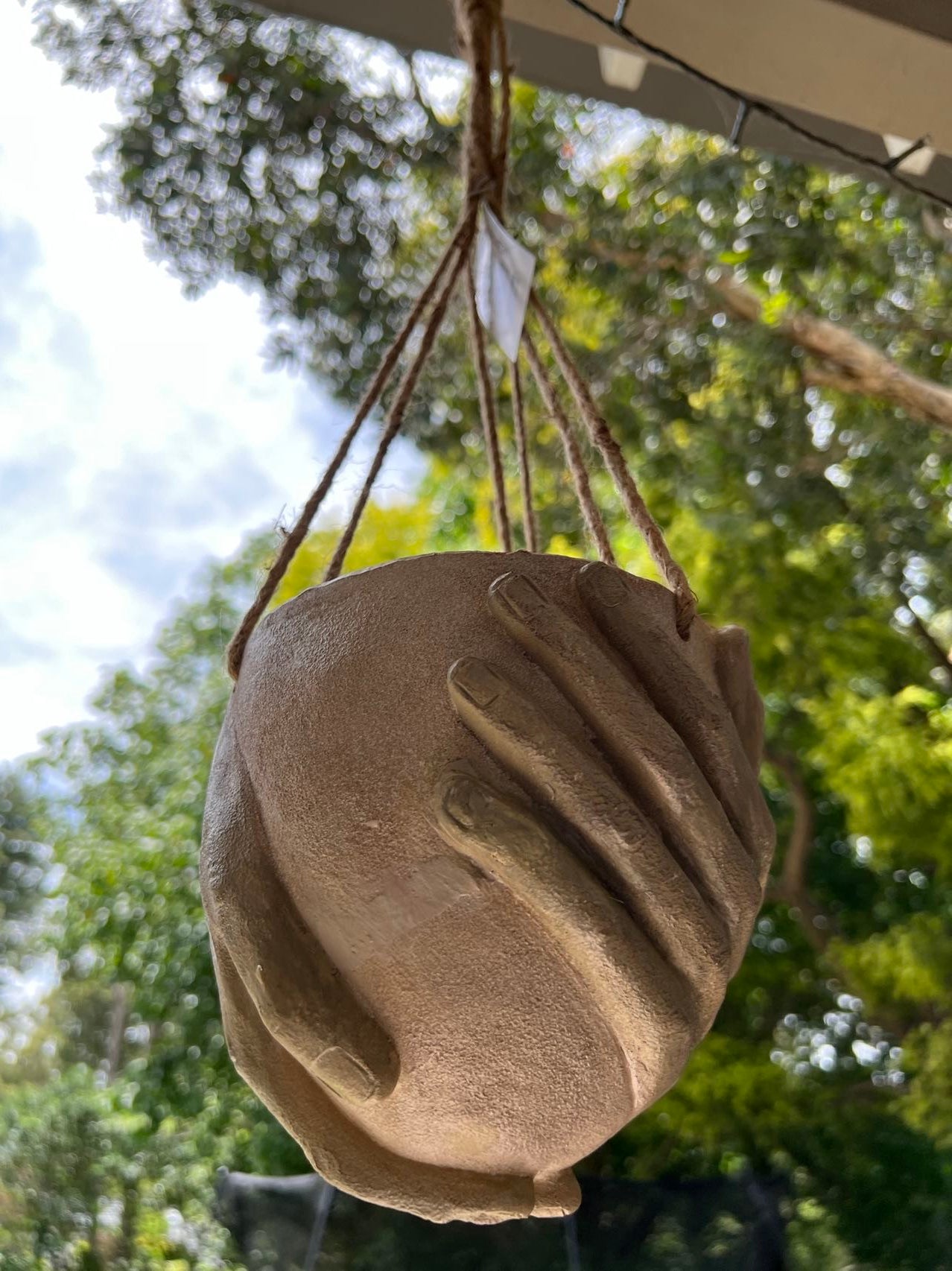 New Two Hands Terracotta Clay Effect Hanging Planter Ornament