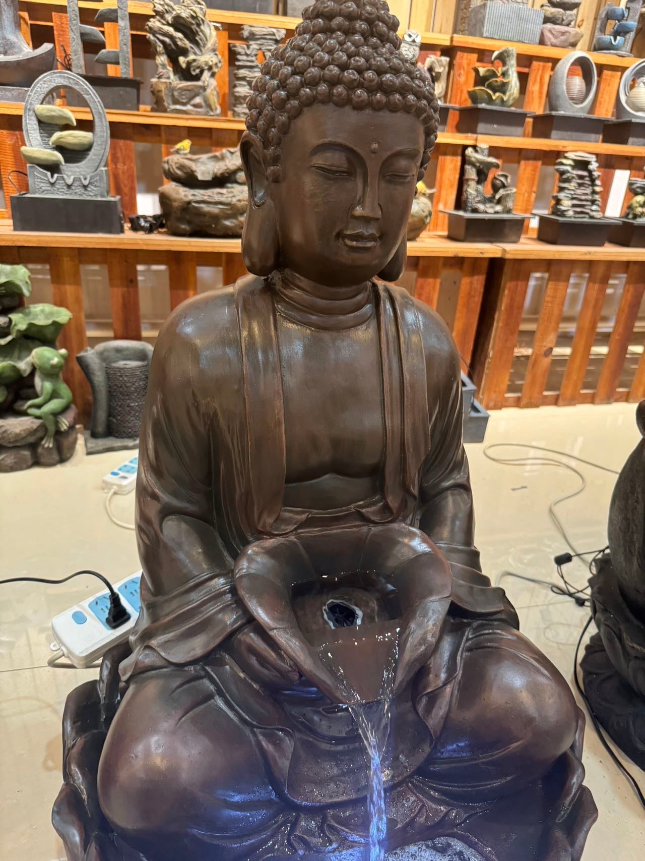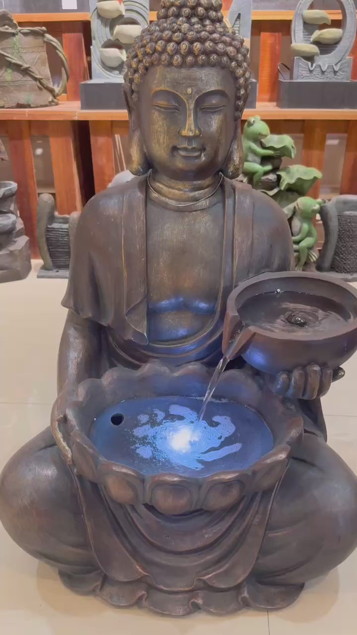 Courage Buddha Tabletop Water Feature 90cm Tall Outdoor Fountain Unique Colour