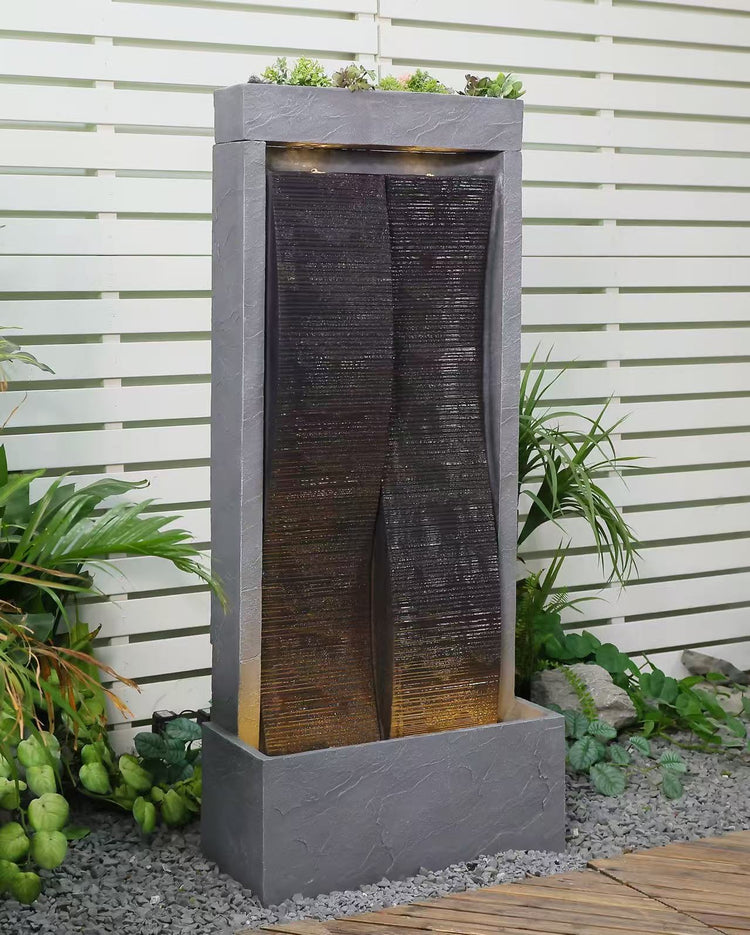 The water wall is enhanced by powerful integrated LED lights, creating a calm and peaceful atmosphere as it gently flows through the many levels & cavities / bricks down the wall feature. Simply remove from the box, add water, connect to a power source and within a few minutes you will have a relaxing, modern addition to your garden or home.