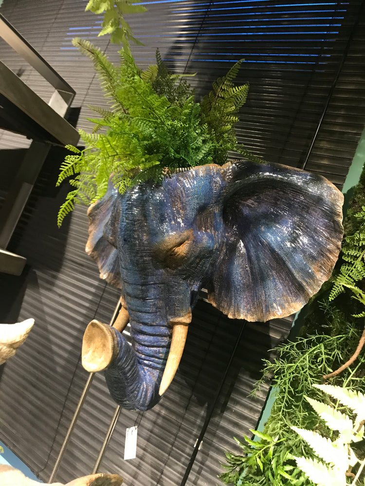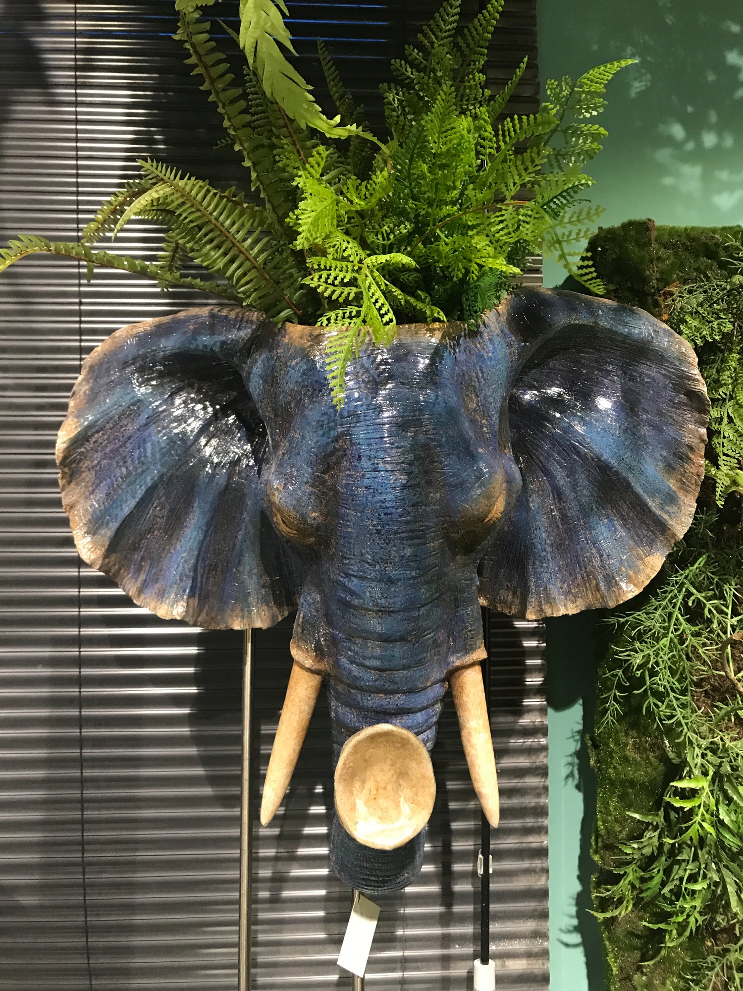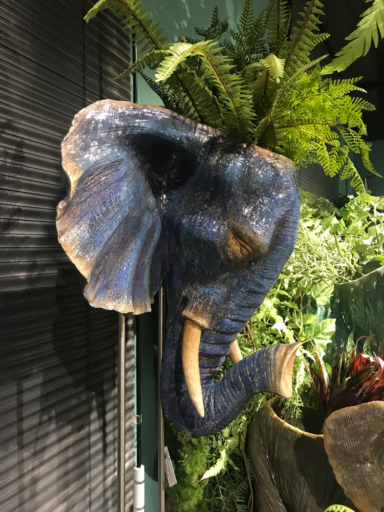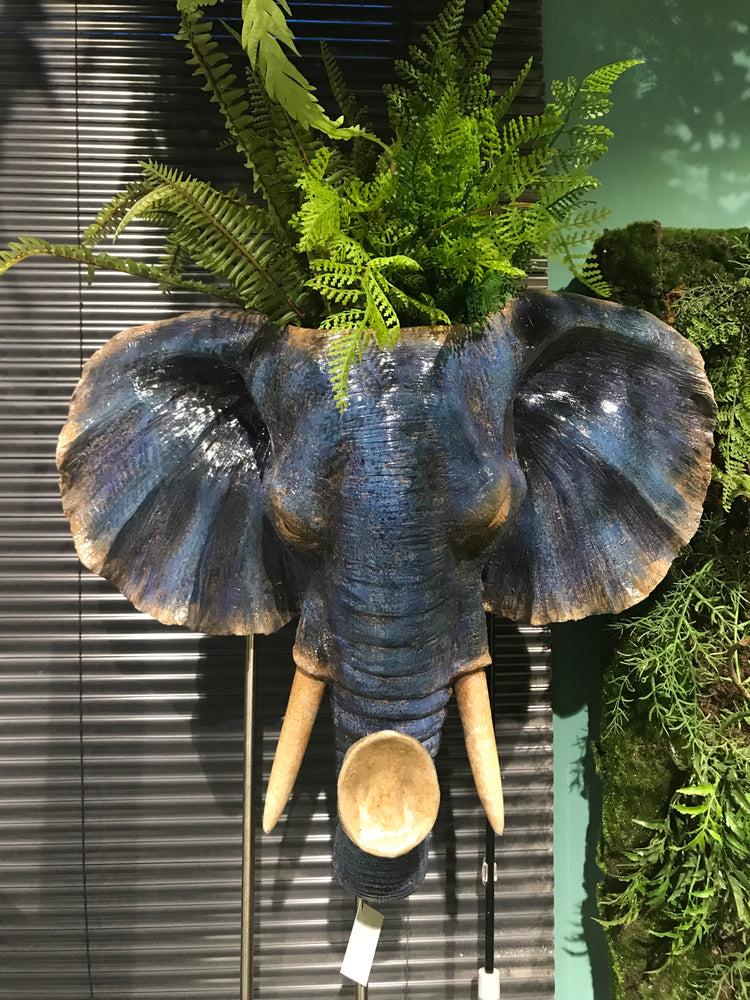 Amazing elephant head wall hanging planter. Blue with a ceramic effect