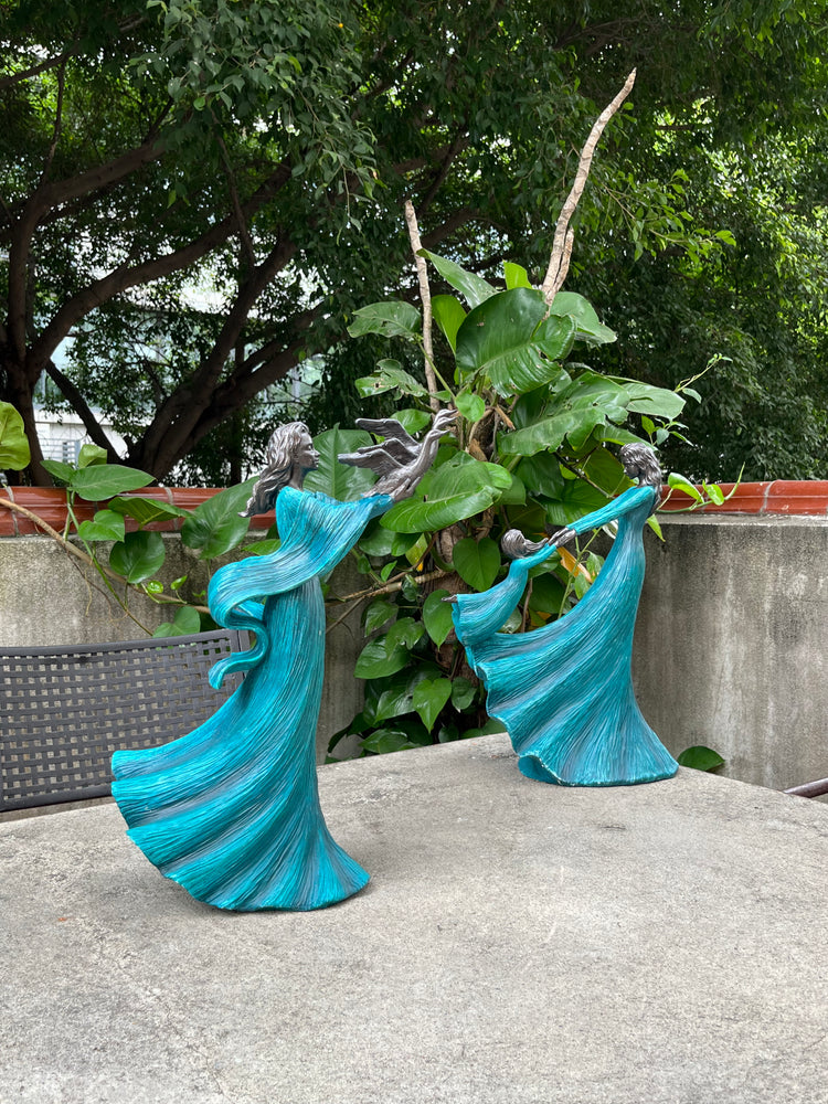 Teal Blue colouring with dress featuring amazing details with bronze contrast. New Series include 2 statues.