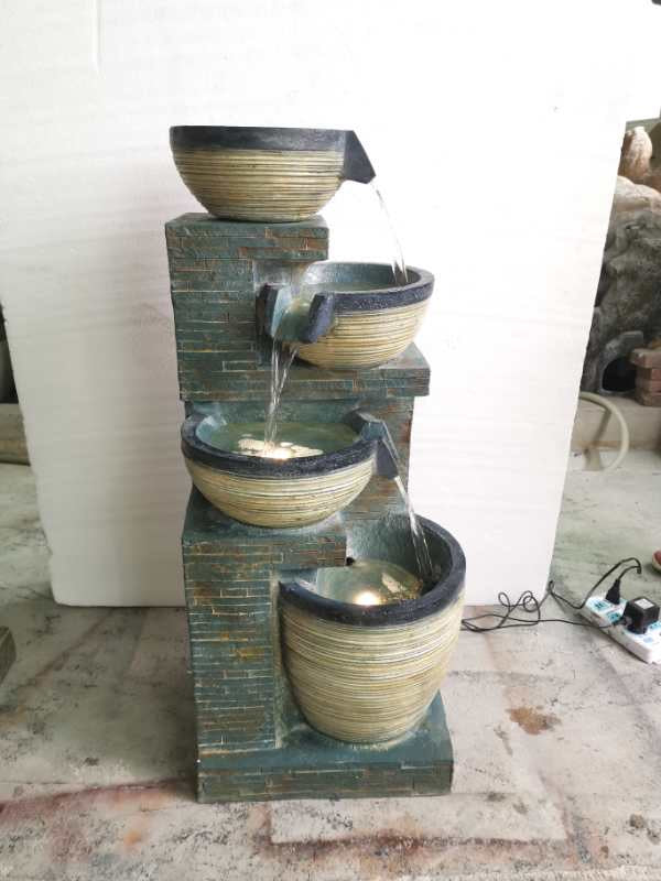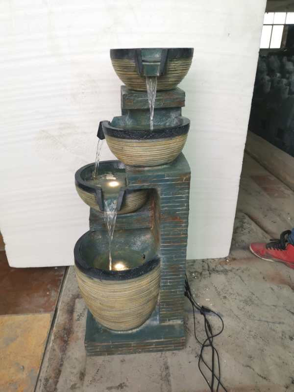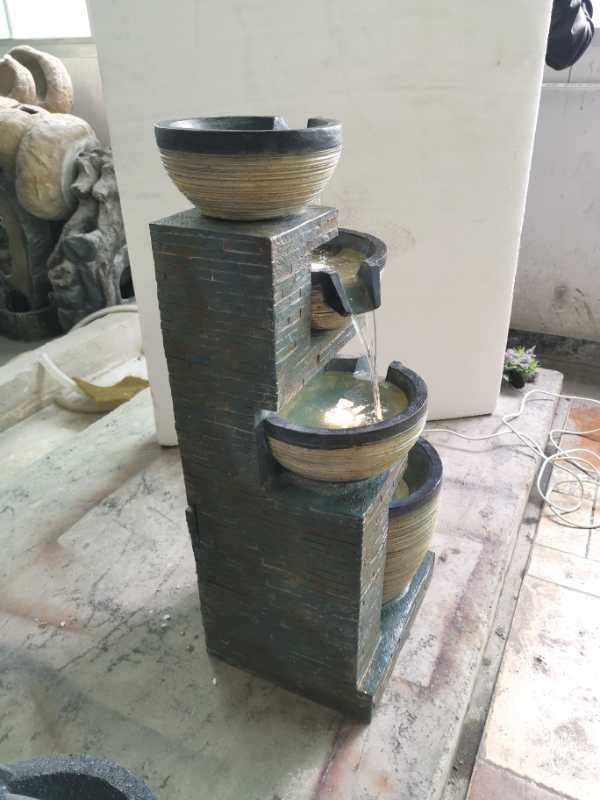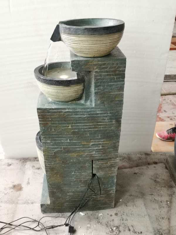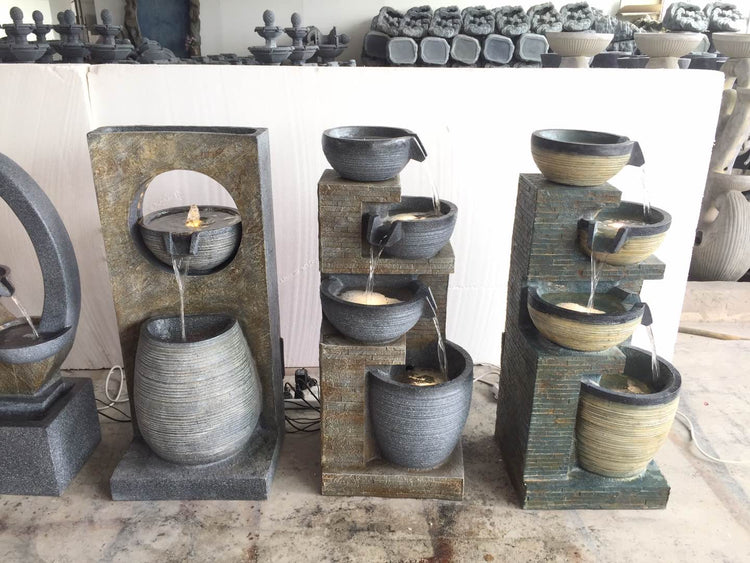 A plug & play concept, does not require plumbing or an electrician. This a free standing, self contained water feature that can be transported easily.