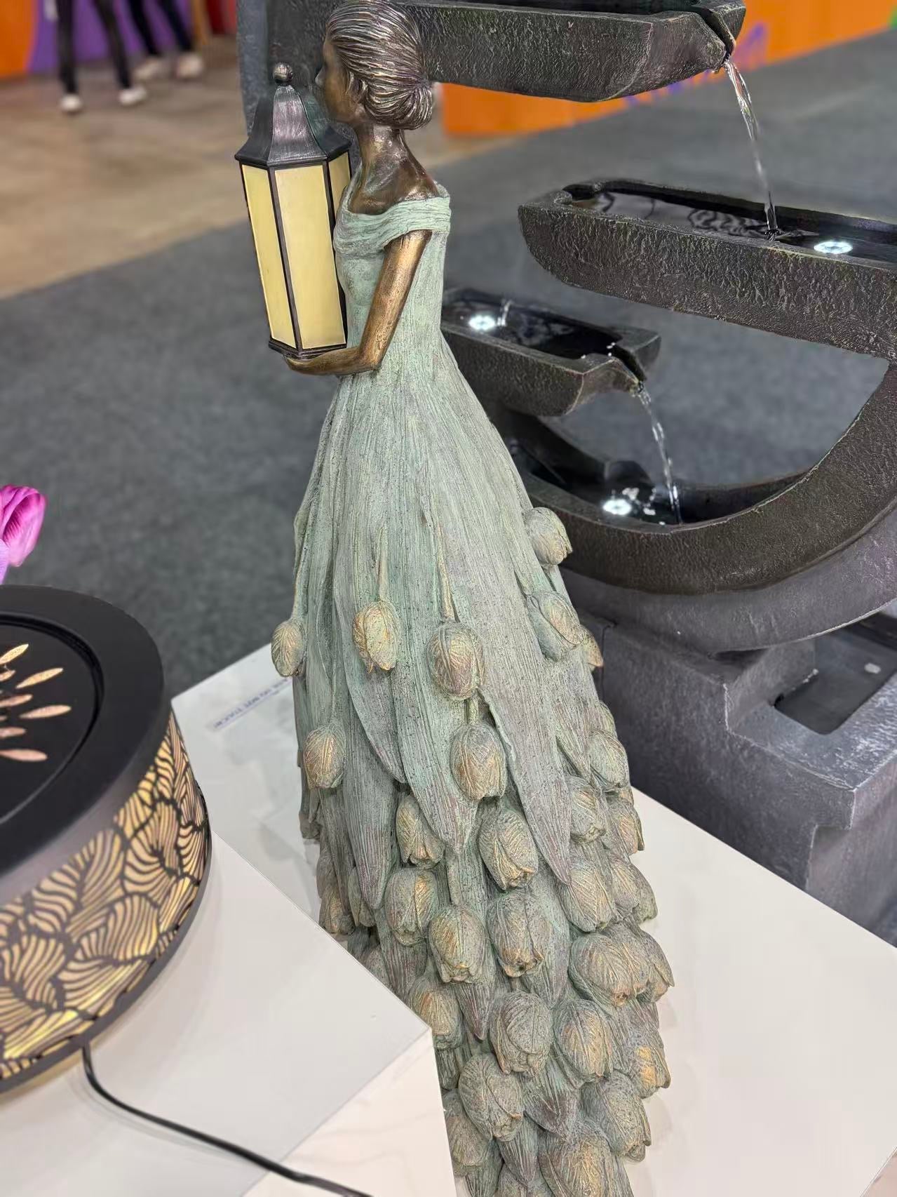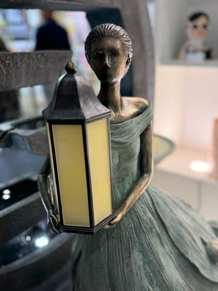 Outstanding elegant feminine lady posing in an intimate reflecting moment. Holding a Solar LED lights.