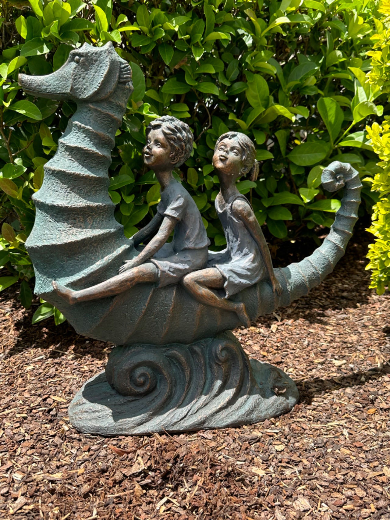 Kids on Seahorse Garden Décor Ornament MGO Outdoor Landscaping Statue