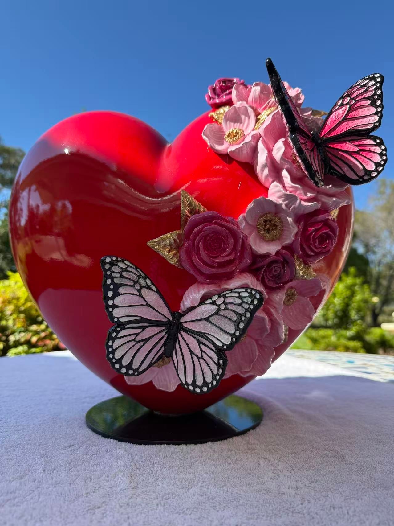 Dimensions: 41.5x29.3x37.6cm colour ceramic vivid love pink with a sensational multicoloured butterflies.