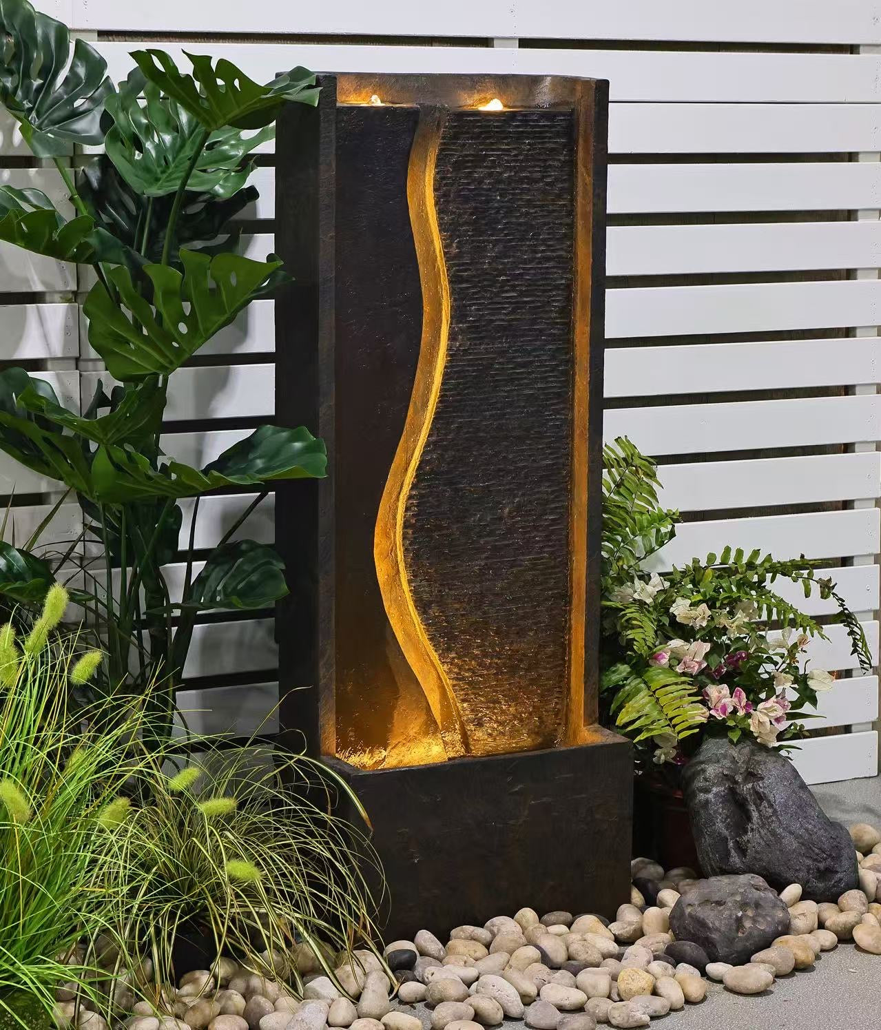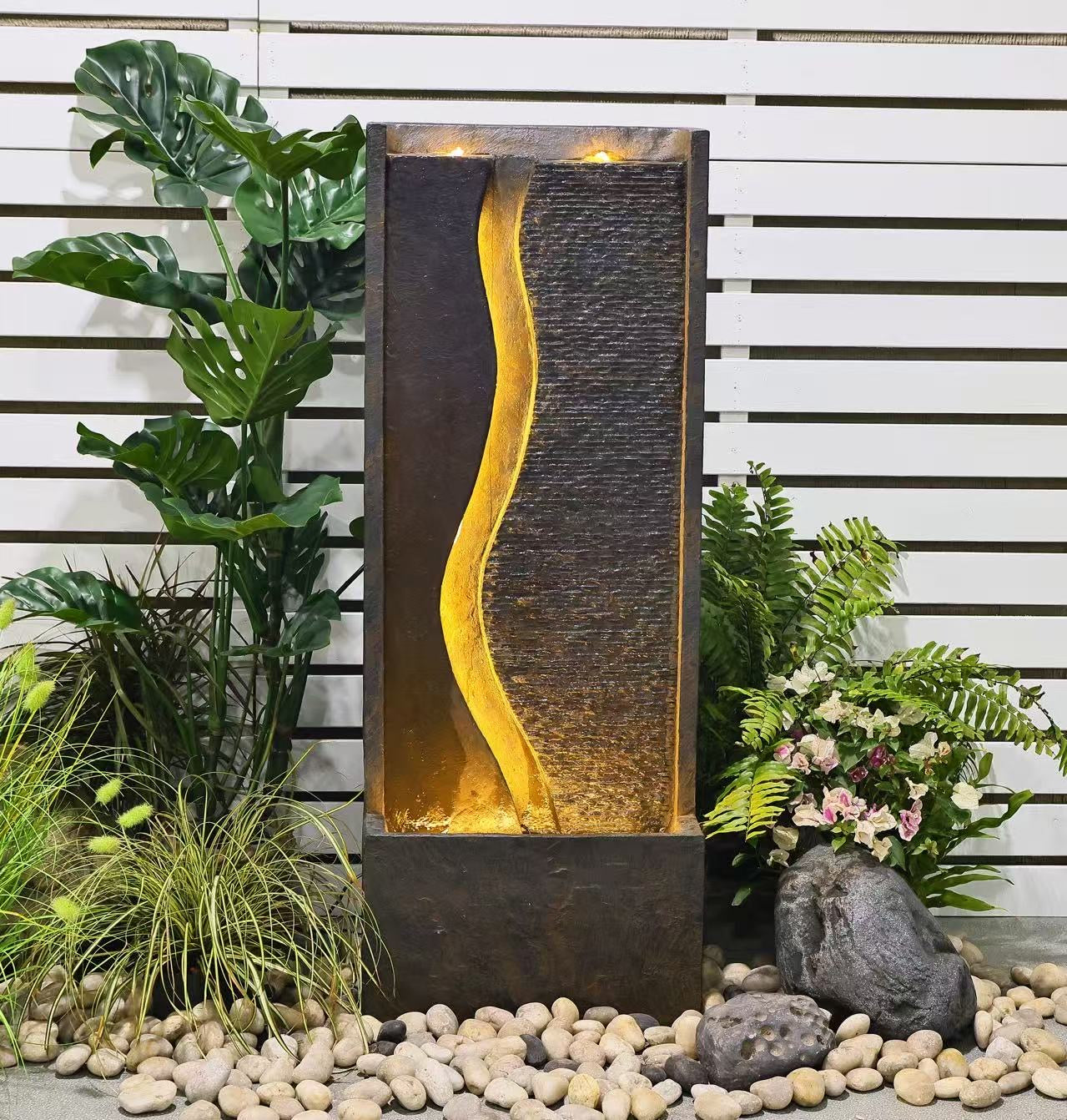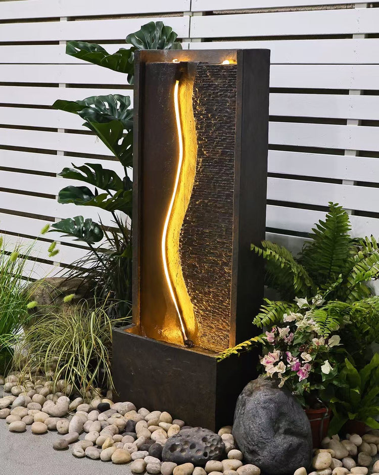 Maui Lights & Water Combo Natural Wall Water Feature Sublime Design