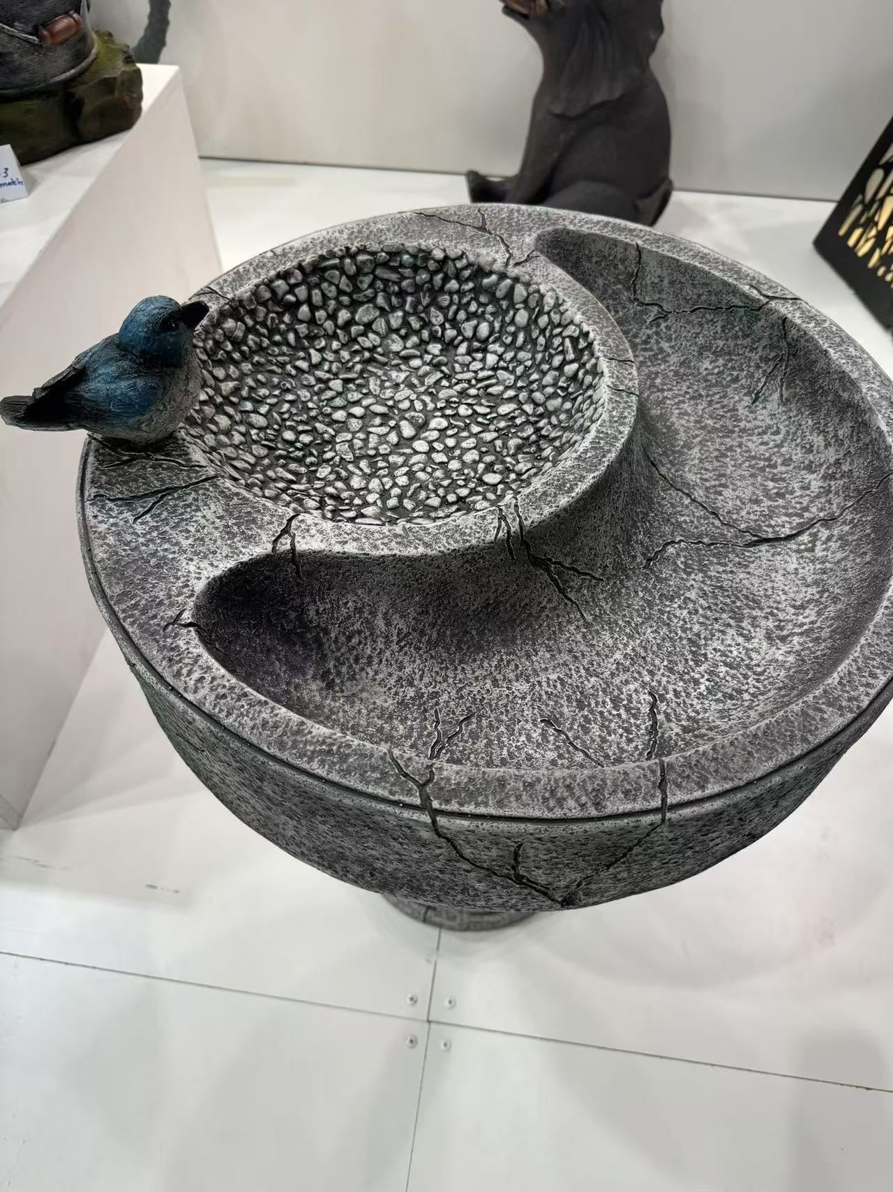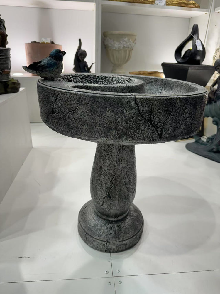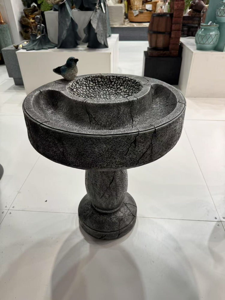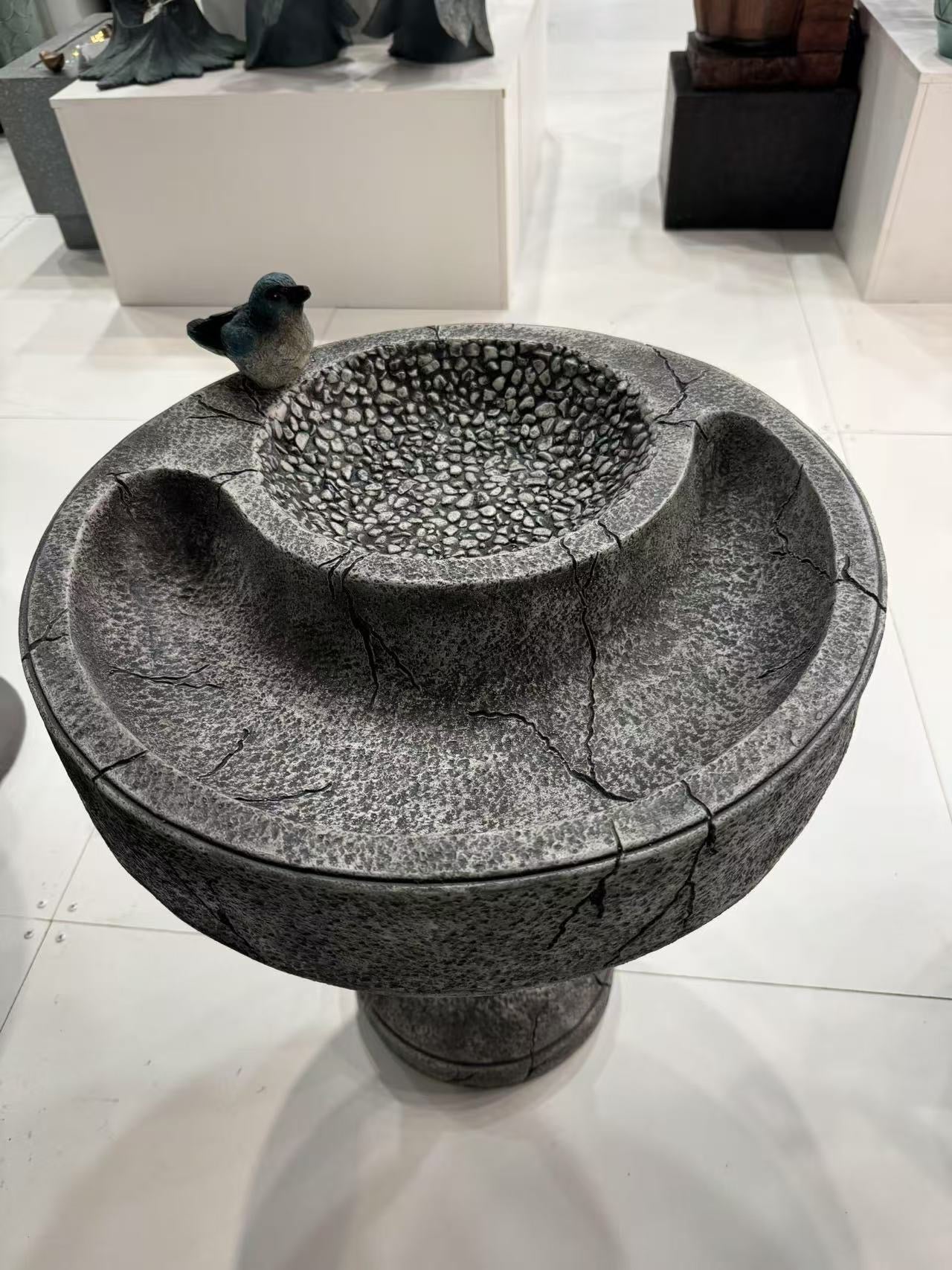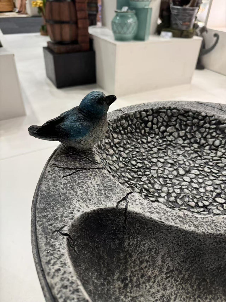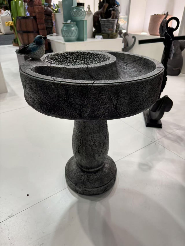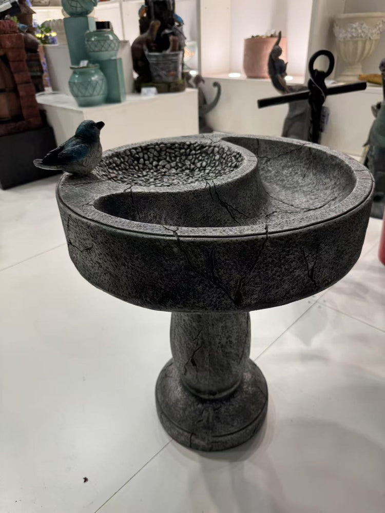 Magic bird bath featuring a stunning bird chirping. Can be split into 2 separate cavities as bird feeder and birdbath.