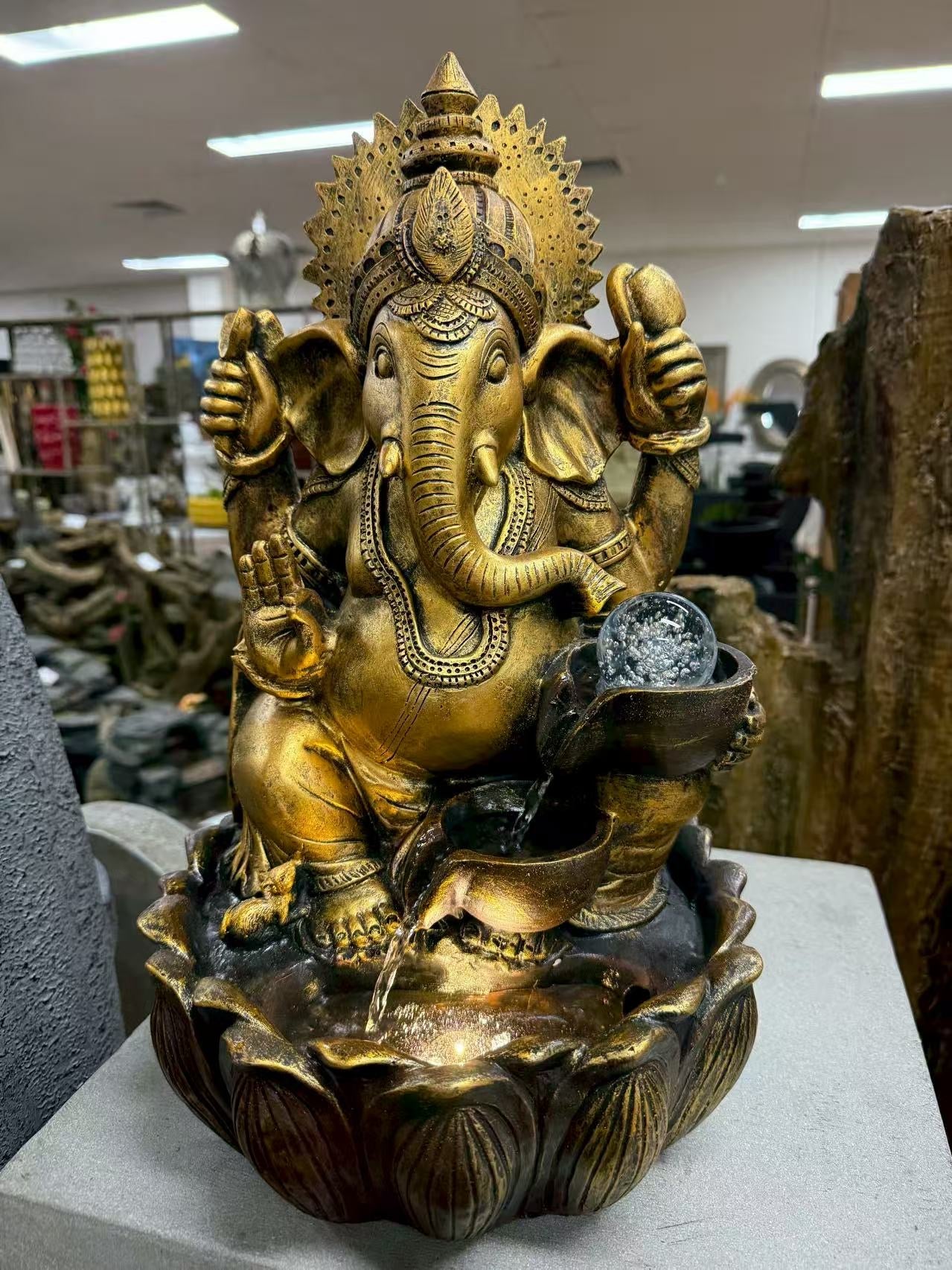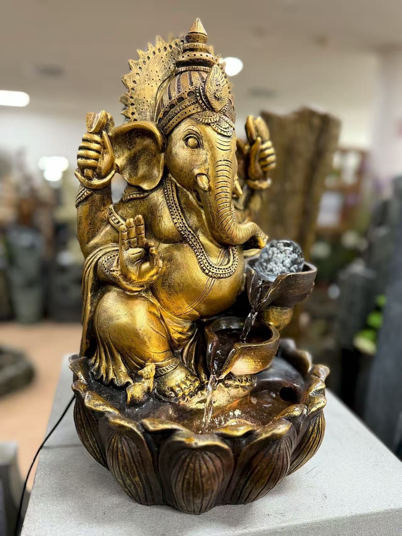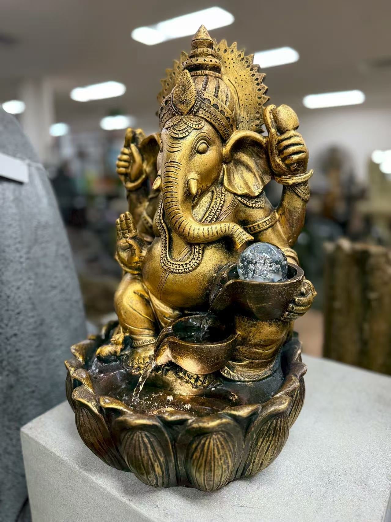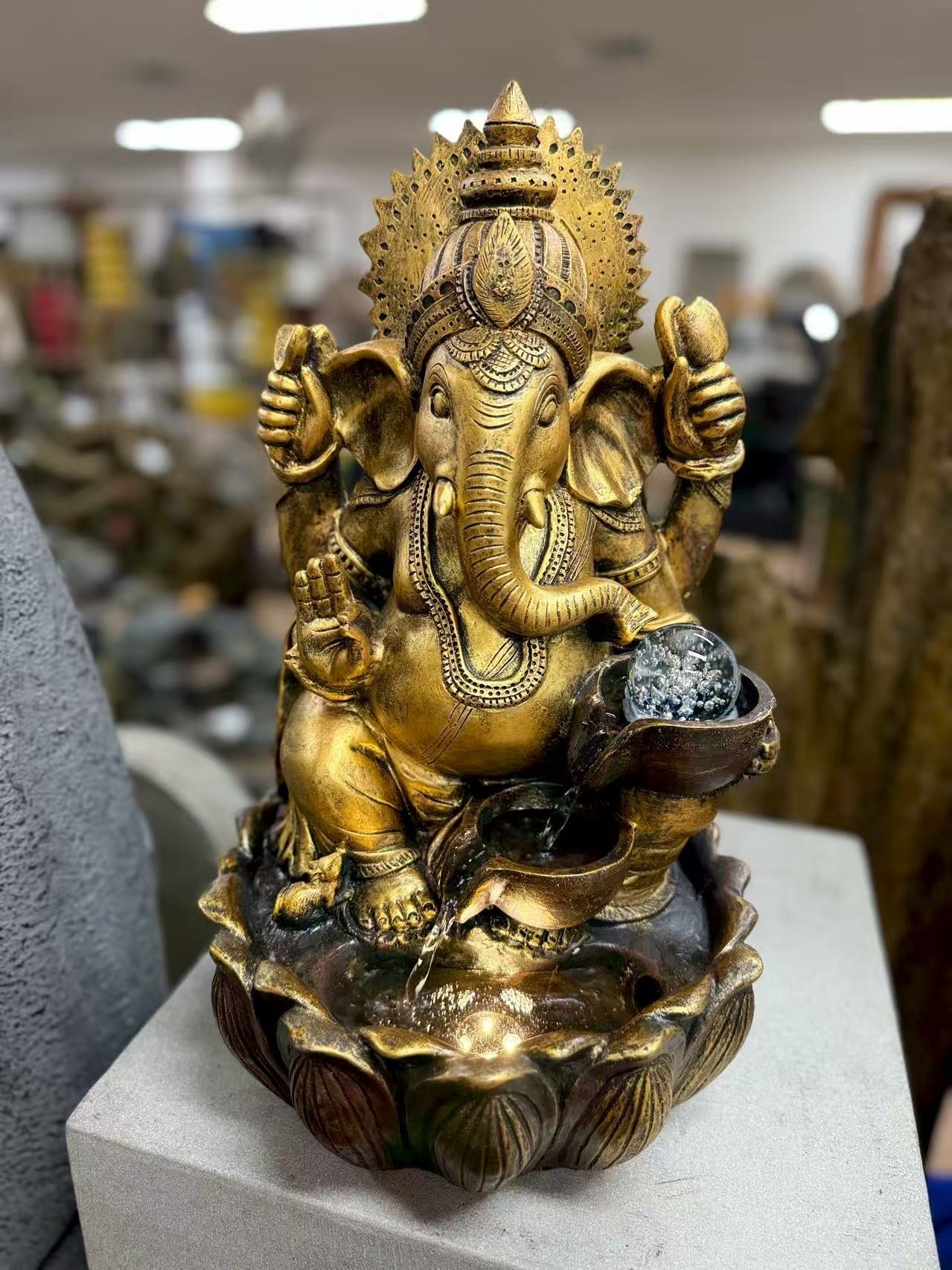 Prosperity Ganesh Tabletop Water Feature 48cm Crystal Ball
