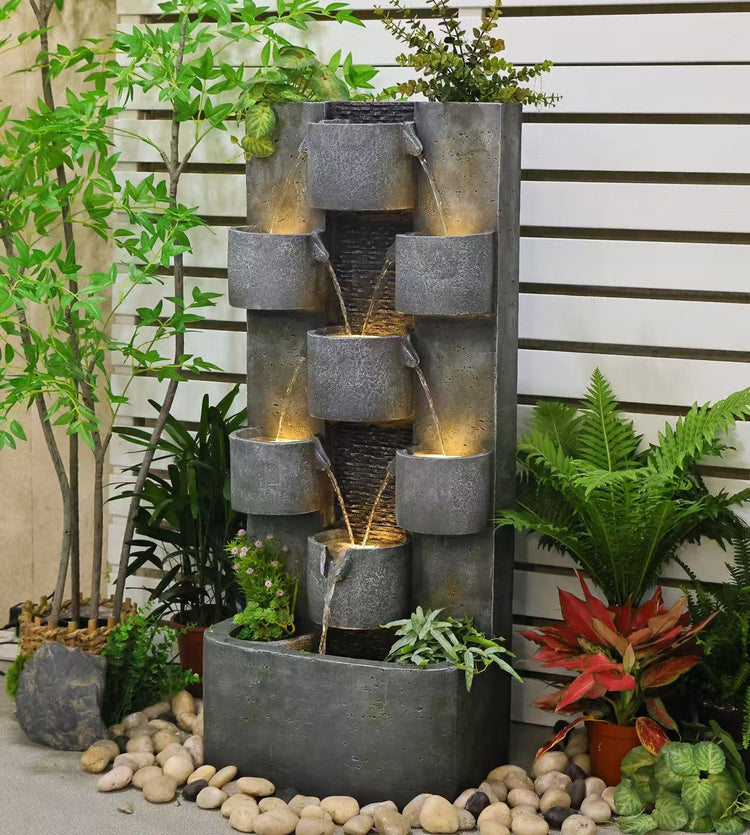 Fountain comes with Multi LED, Large robust water pump, transformer & 10 meter cord.