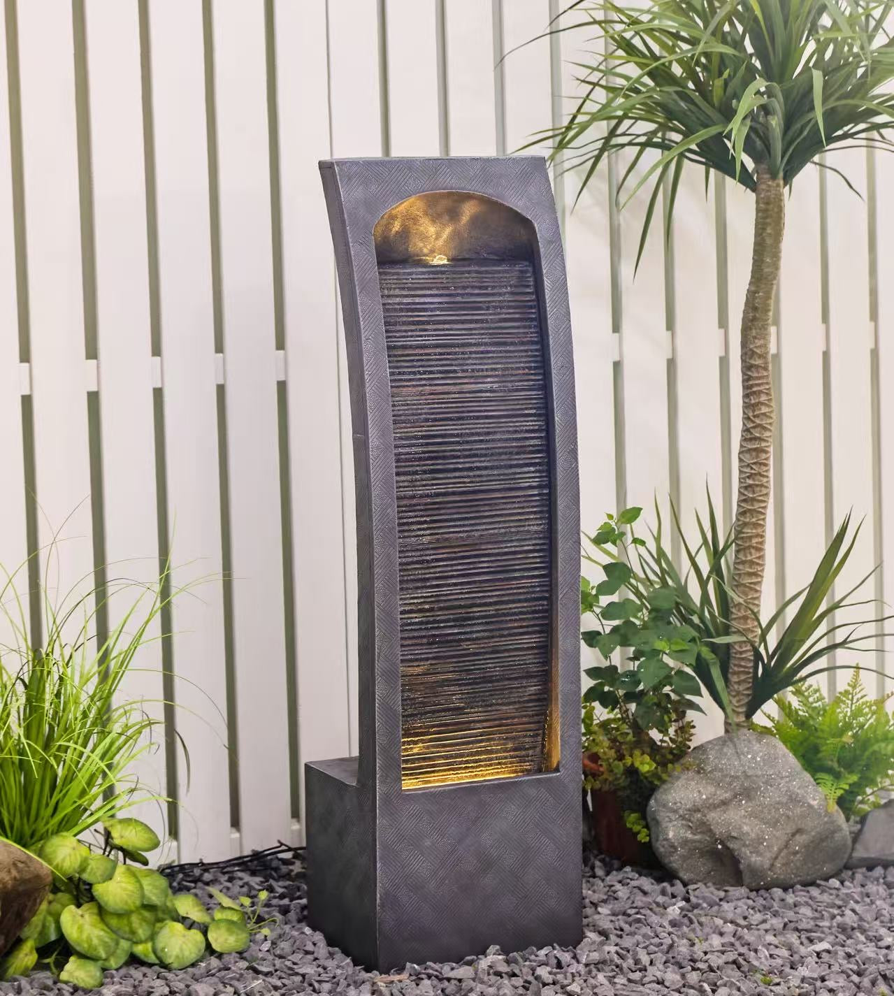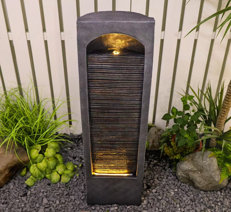 The water wall is enhanced by powerful integrated LED lights, creating a calm and peaceful atmosphere as it gently flows through the many levels & cavities / bricks down the wall feature. Simply remove from the box, add water, connect to a power source and within a few minutes you will have a relaxing, modern addition to your garden or home.
