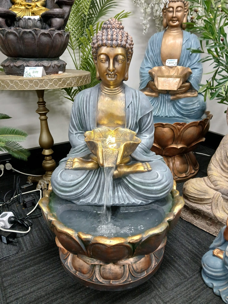 Togetherness Buddha Water Feature 1 Meter Tall Outdoor Fountain Unique Colours