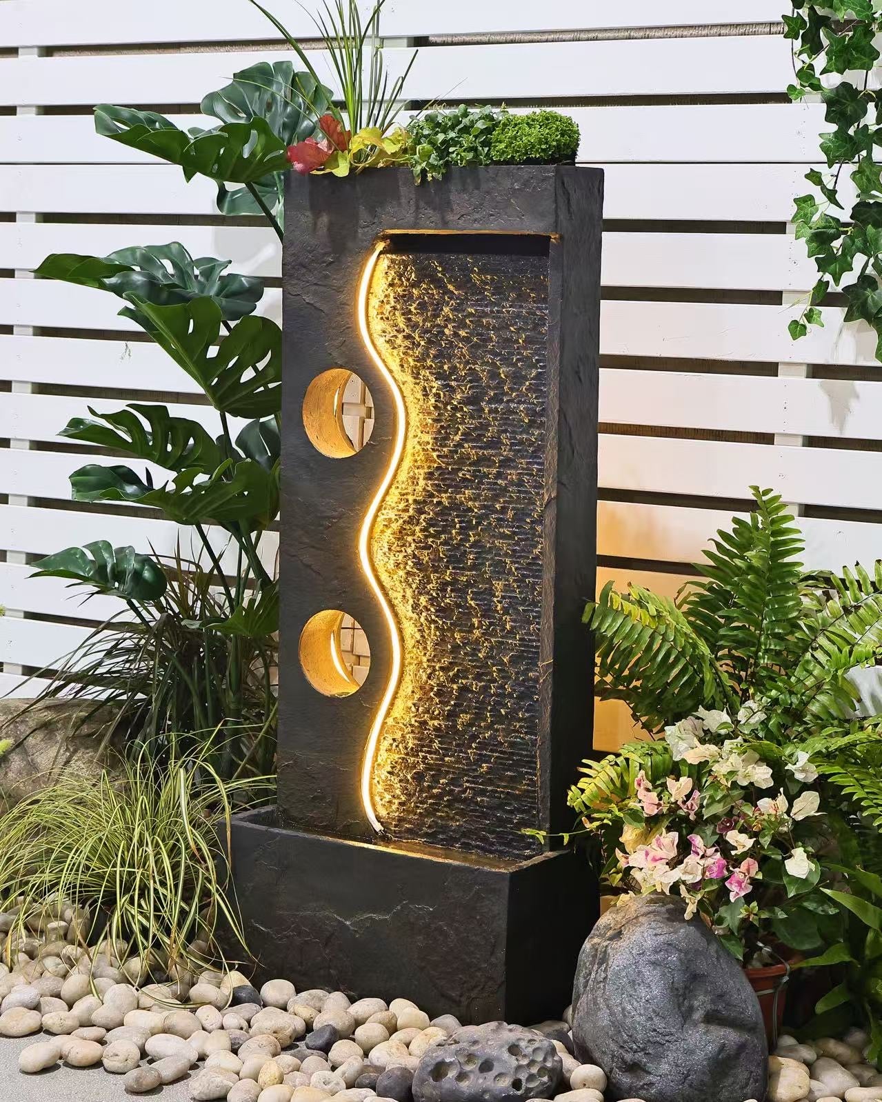 Tonga Lights & Water Combo Natural Wall Water Feature Sublime Design