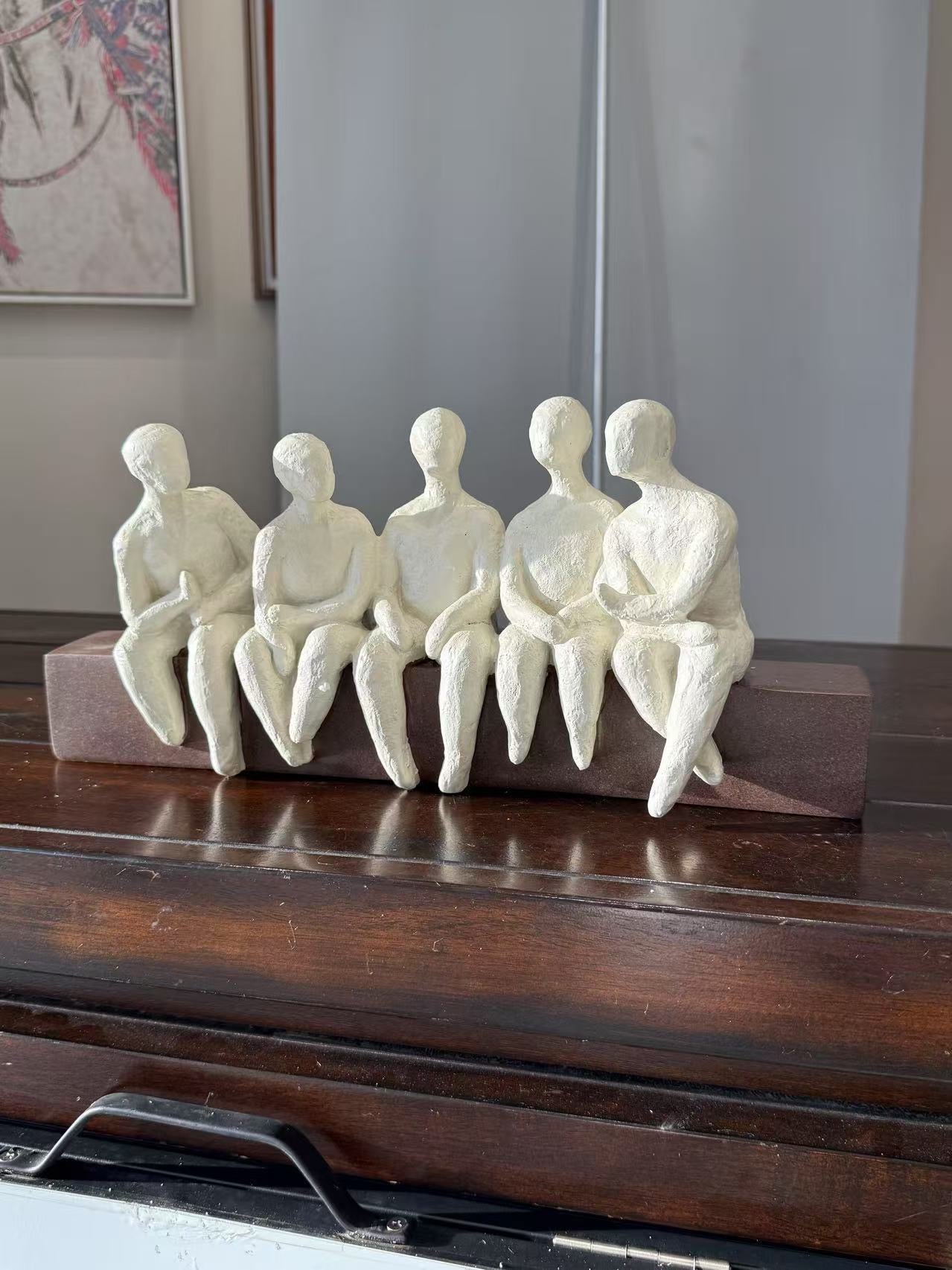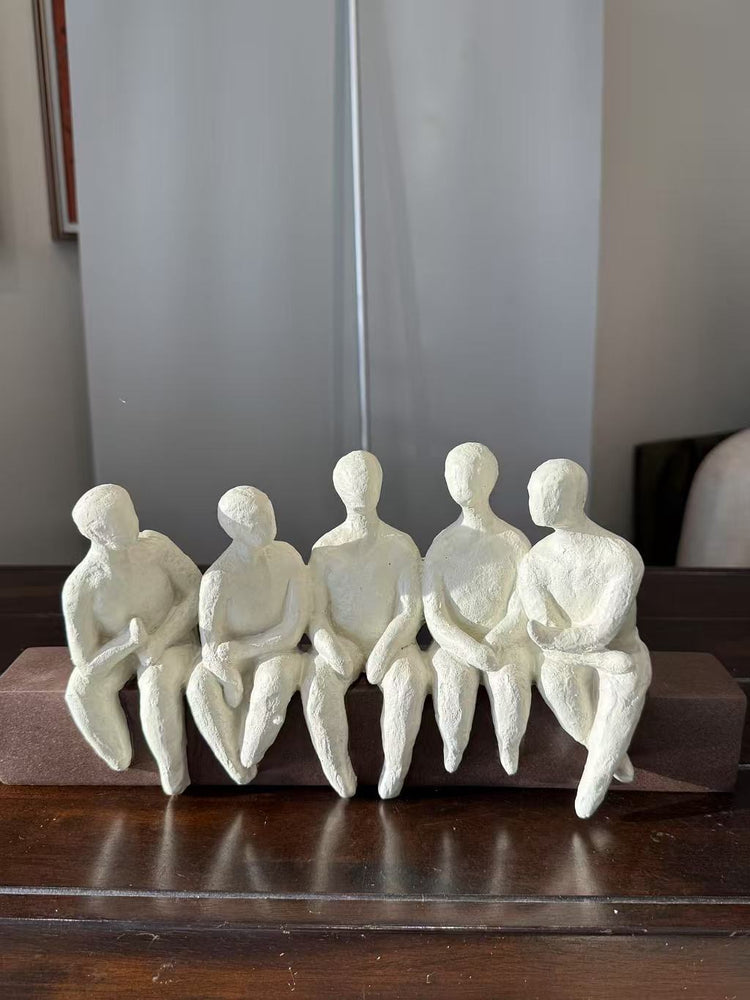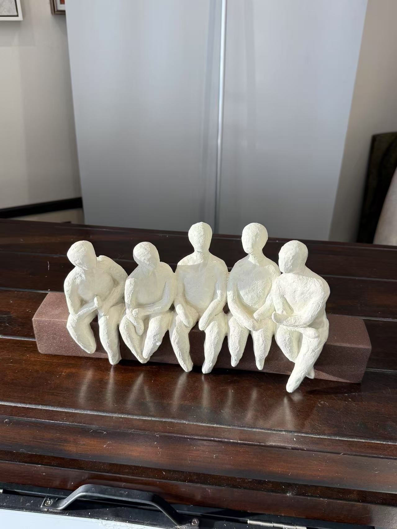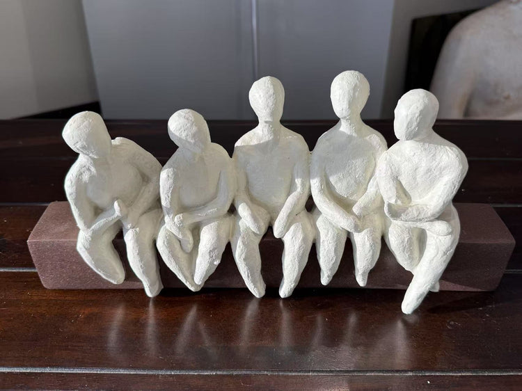 Trabajo Group Friends Sitting On Bench White Colour Clay Artisan Finish