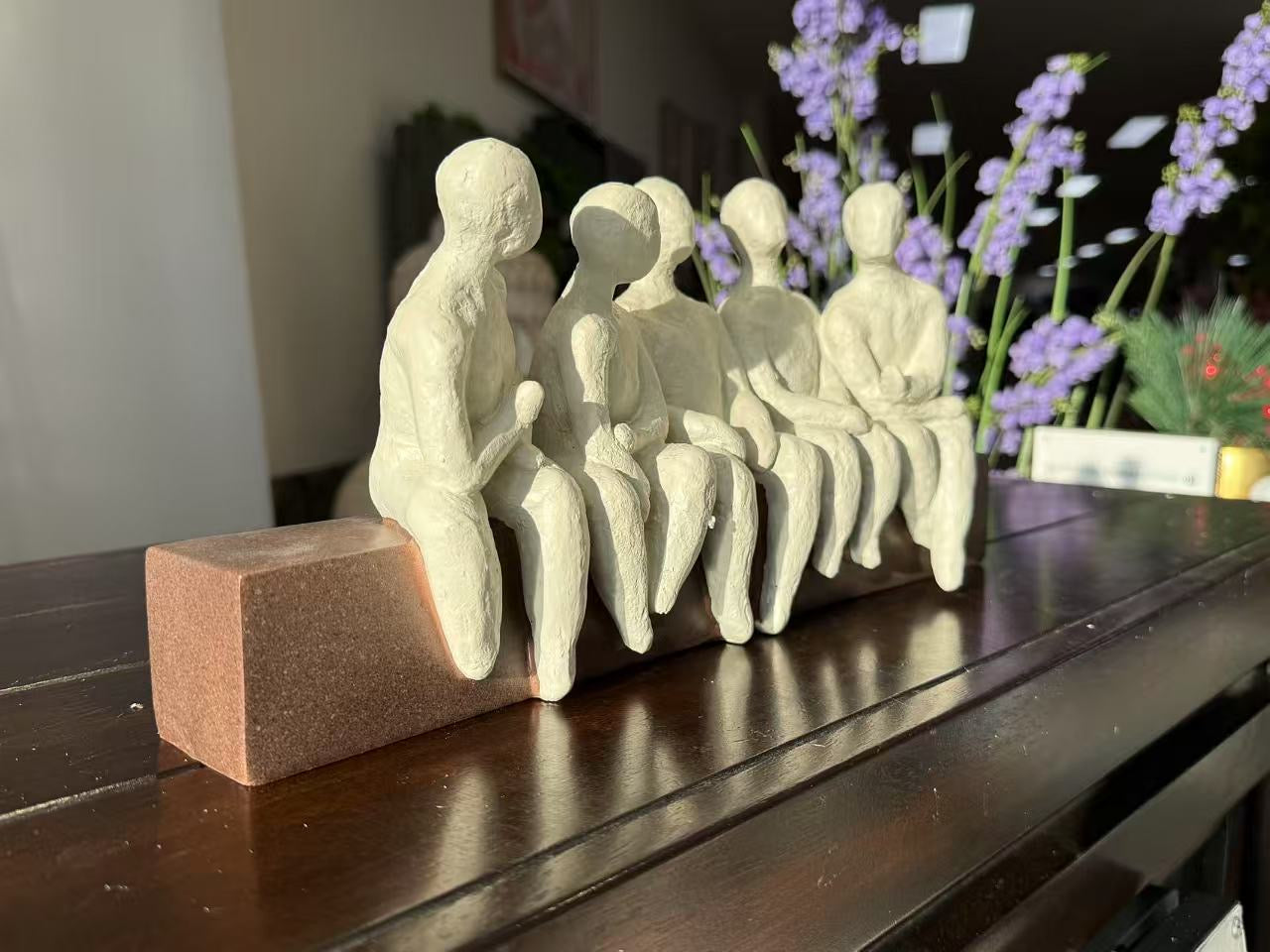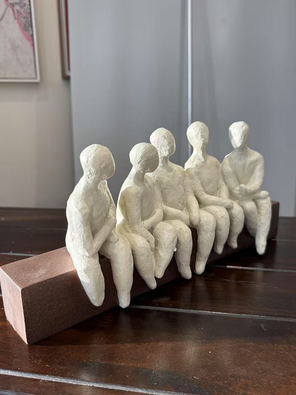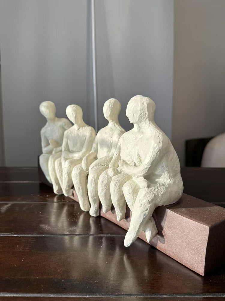 Trabajo Group Friends Sitting On Bench White Colour Clay Artisan Finish