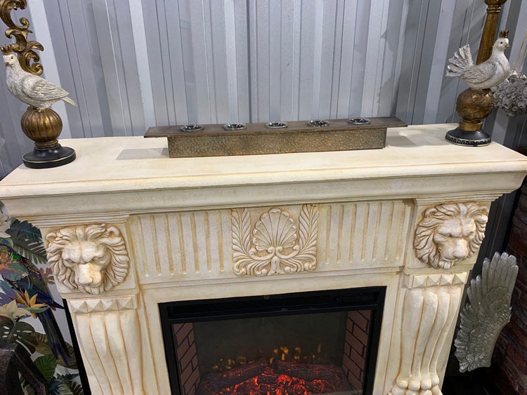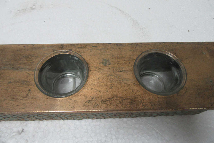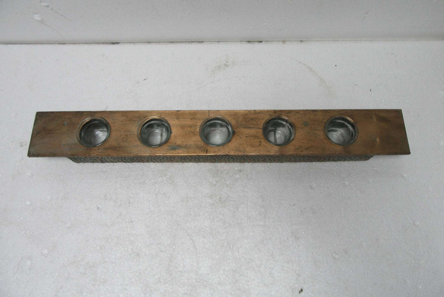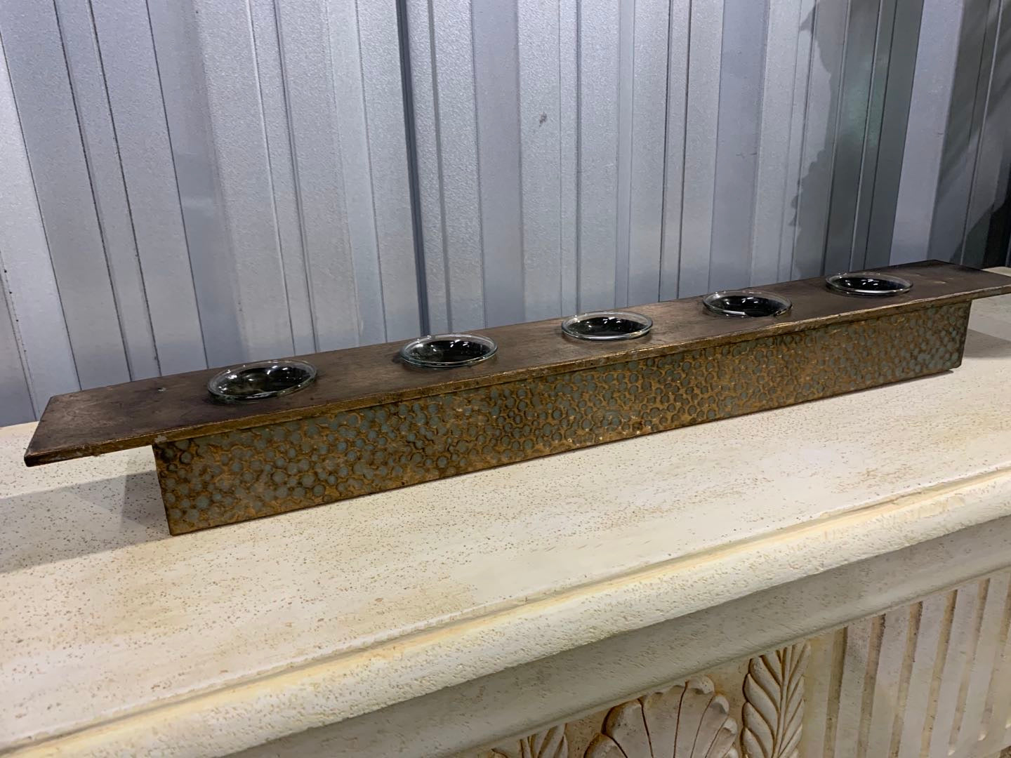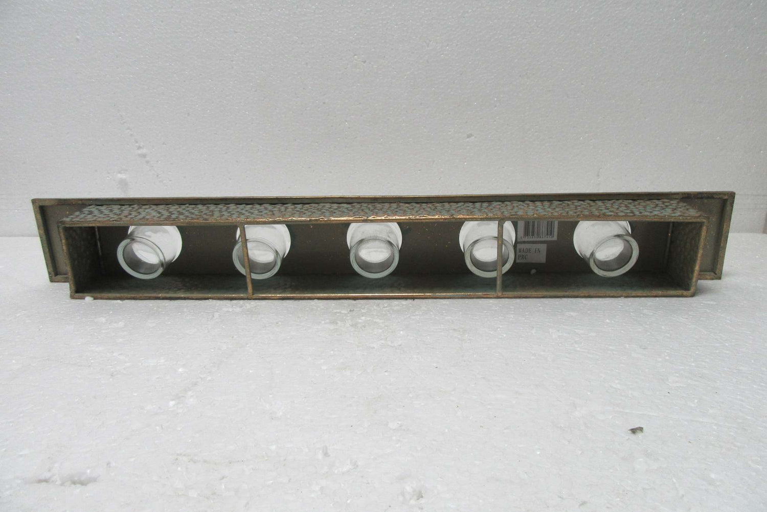 This is a long feature that is table top with hanging 5 glass candle holder inside, including 5 glass holders