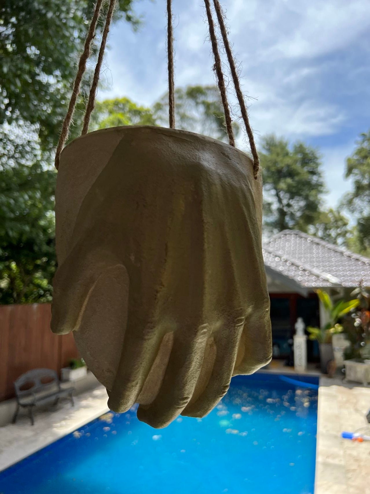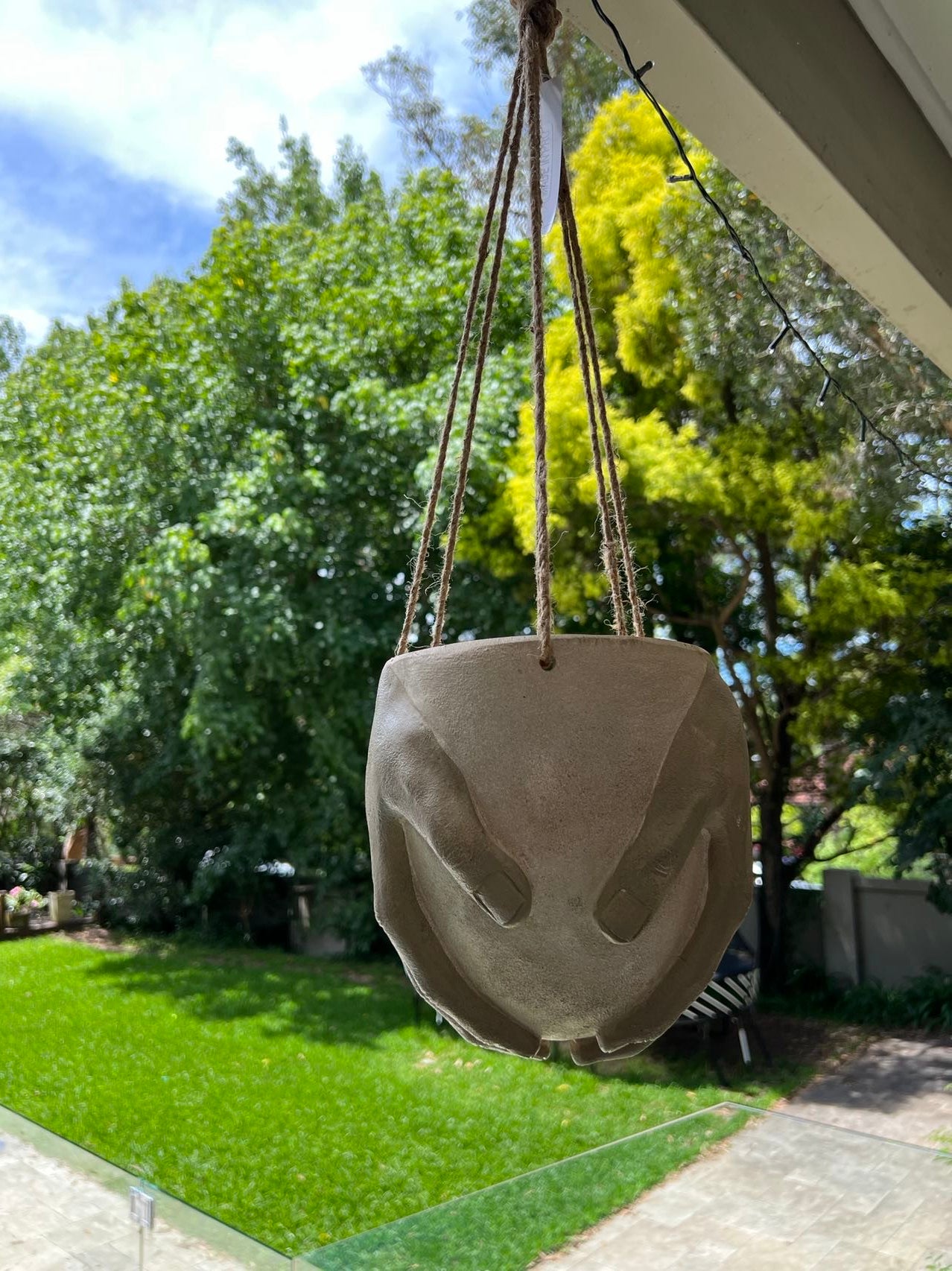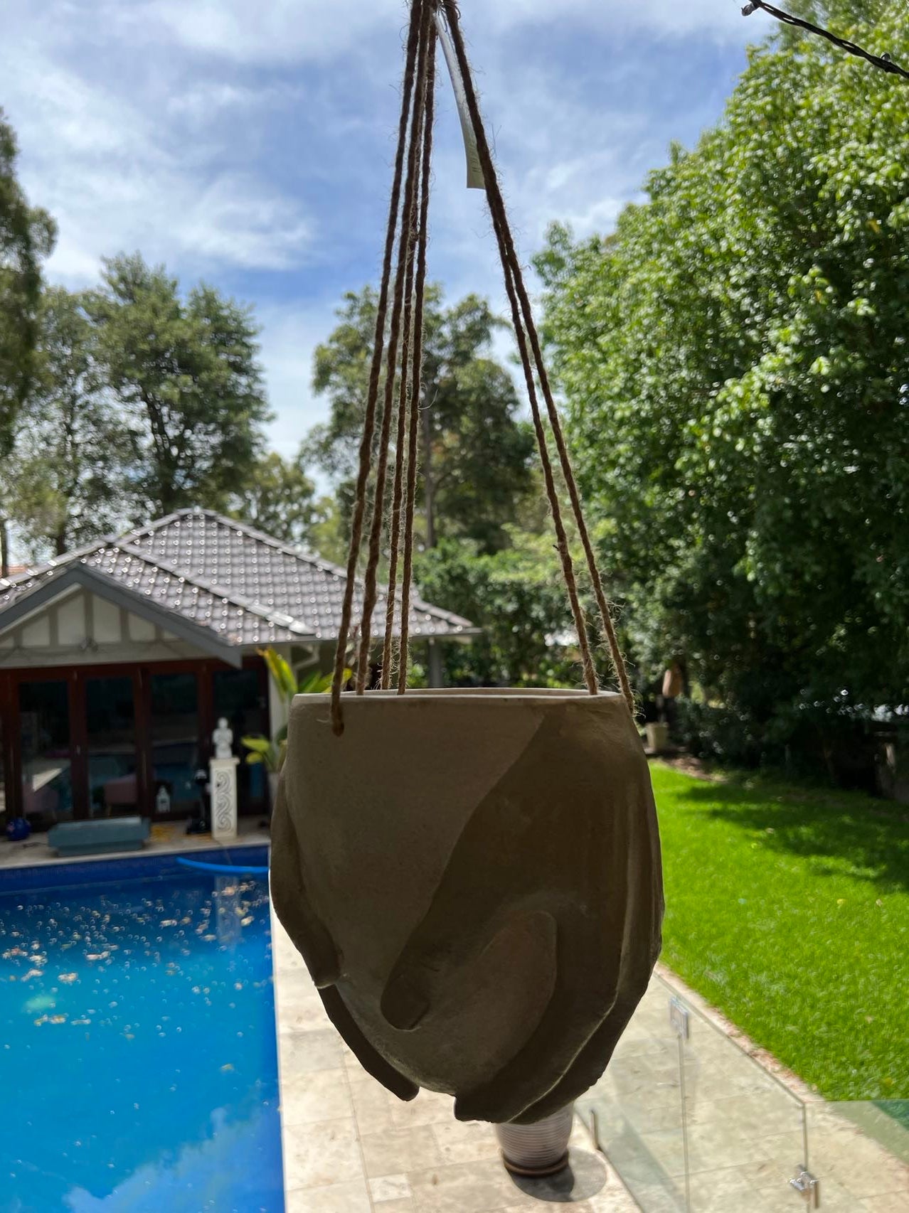 Amazing two hands clay terracotta look & feel hanging planter. Earthy colours with a terracotta Clay effect