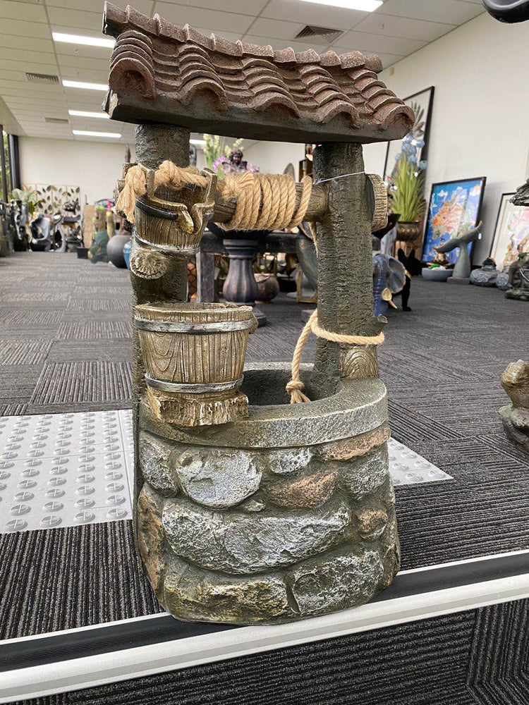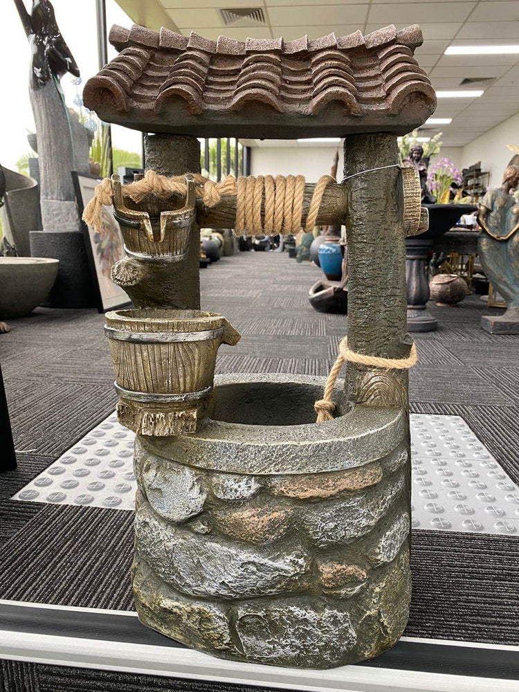 Create a stunning focal point in your garden with this exquisitely designed water feature. As the water trickles from the buckets into the well it is lit up beautifully by the LEDs, ensuring that you can enjoy your water feature no matter what the time is. Crafted from polystone, so you can enjoy the intricate detail for many years to come.