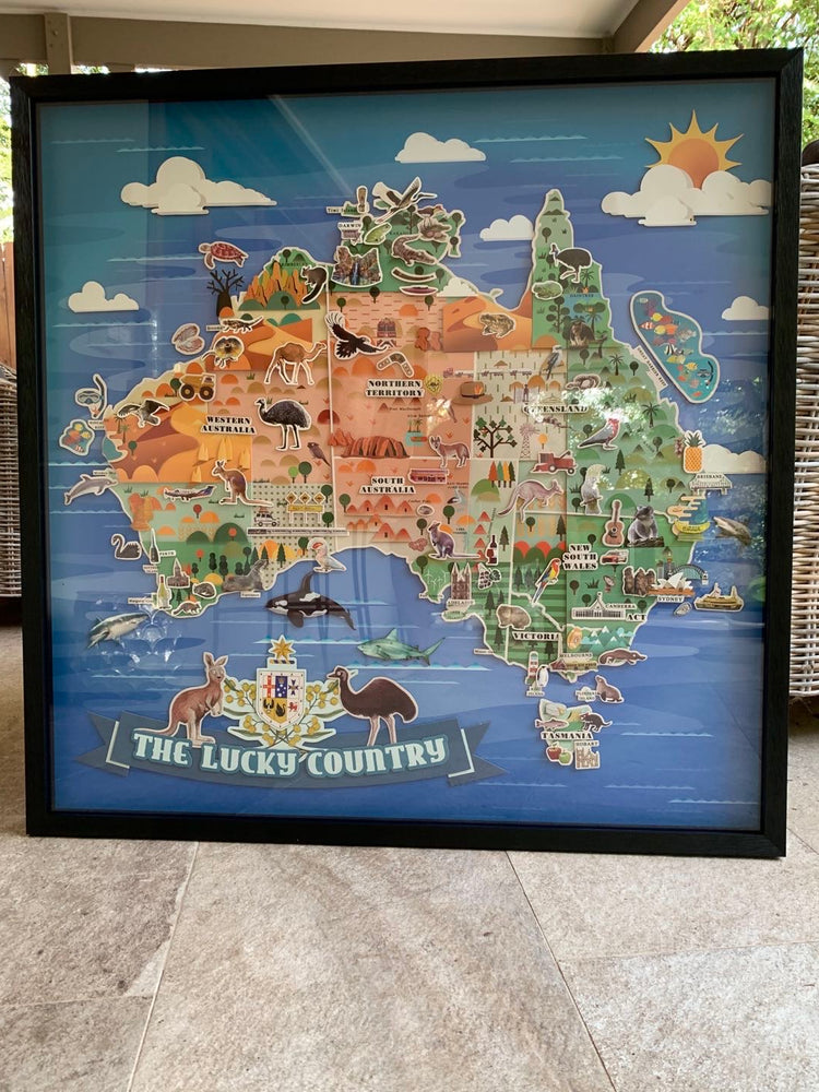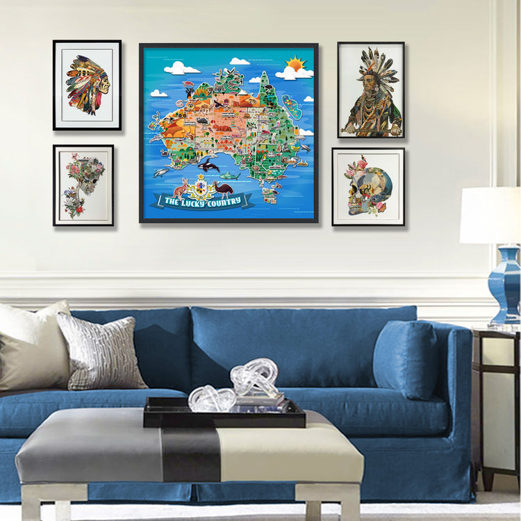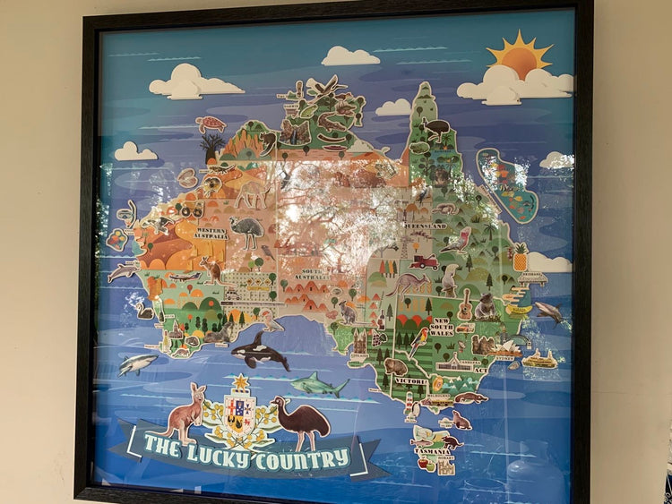 Australian Map like never seen before. All landmarks, Flora & Fauna depicted in our unique paper collage.