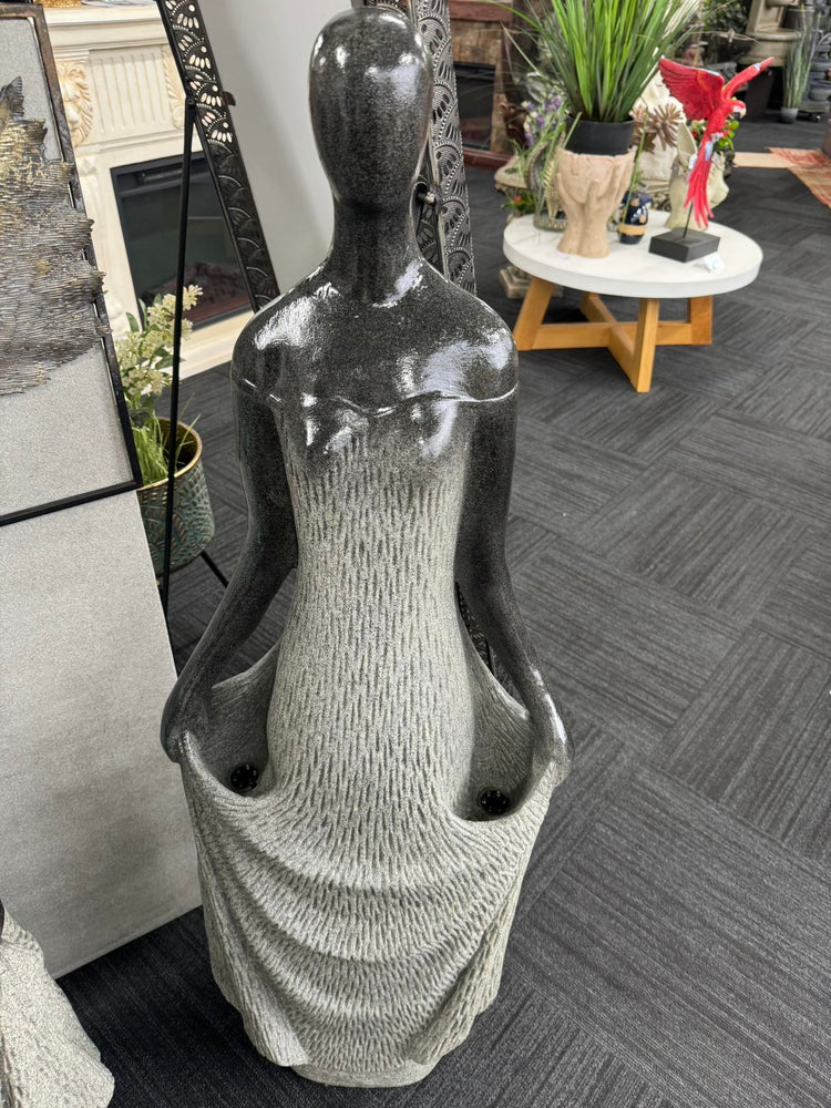 Sensational Abstract Fountain Depicting Elegant Lady In Sublime Dress With 2 Bubblers & LED Lights. Modern Charcoal & Black Colours with Finest Details.