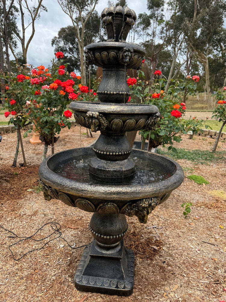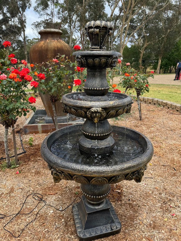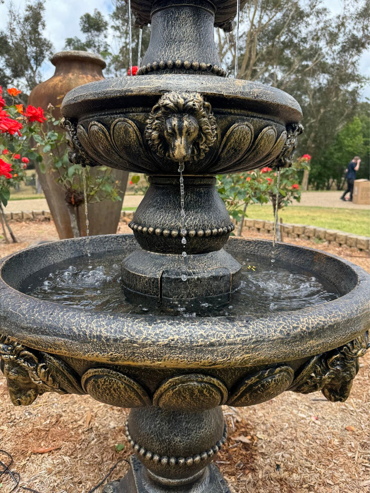 The water circulates from a reservoir hidden inside the feature and is pumped out of the pineapple on the top of the fountain, before gently spilling down through the final tier, ready to be pumped back up to start the cycle all over again.