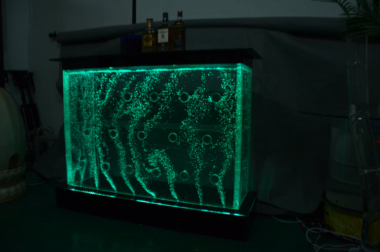 Has acrylic shelves that could be placed to the desired heights. Comes Fully assembled so you can enjoy just after unpacking & filling in water.