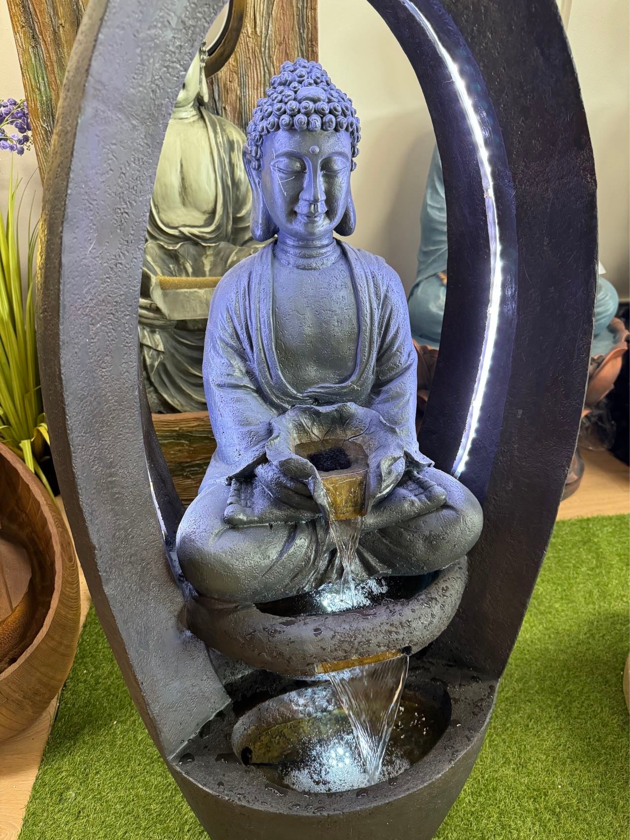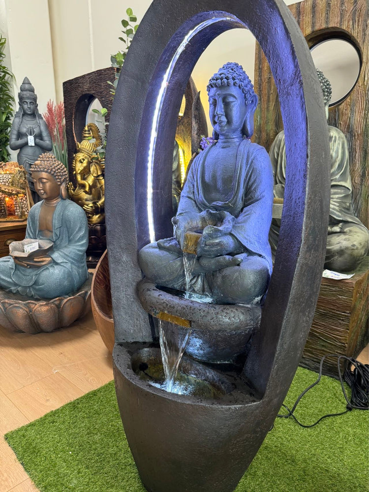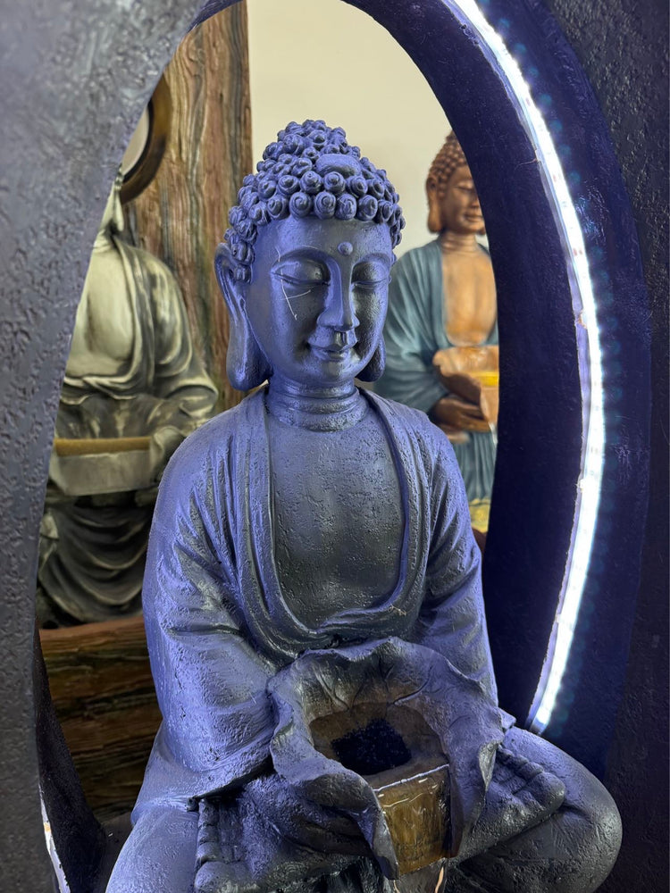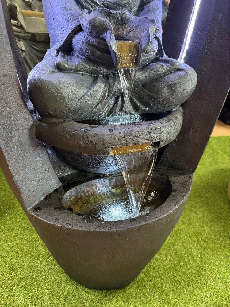 Protection Buddha Water Feature 1.18 Meter Tall Grey Sandstone Finish