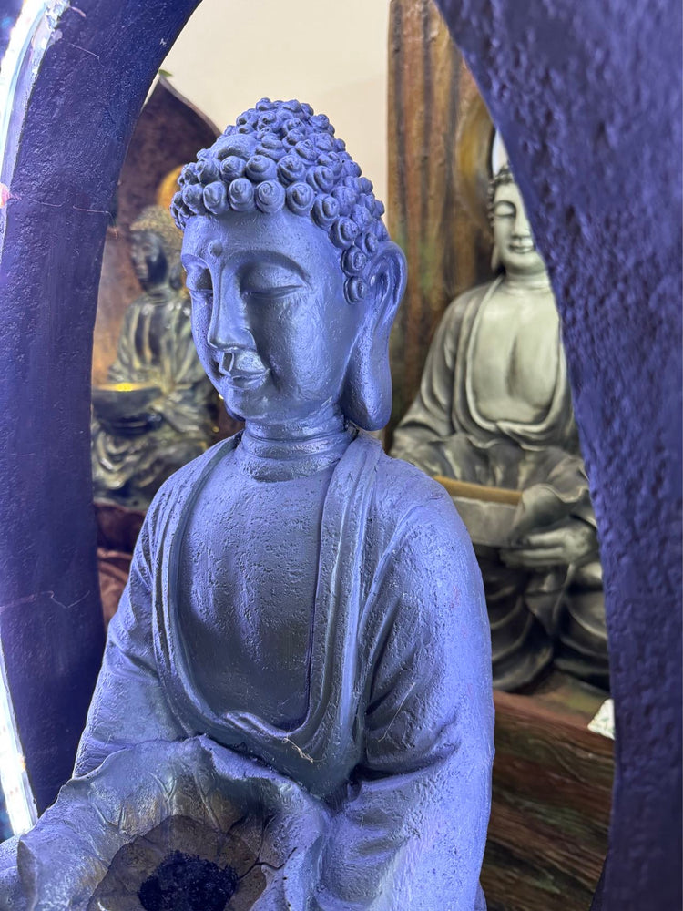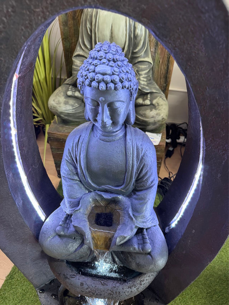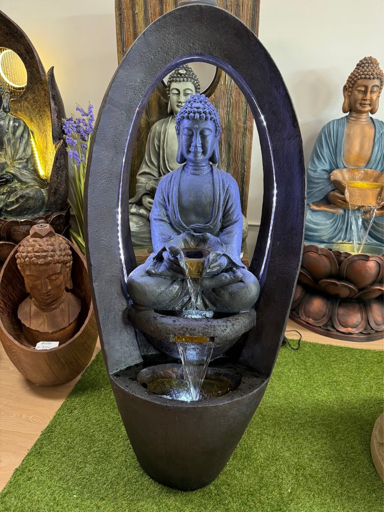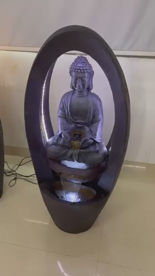 Protection Buddha Water Feature 1.18 Meter Tall Grey Sandstone Finish