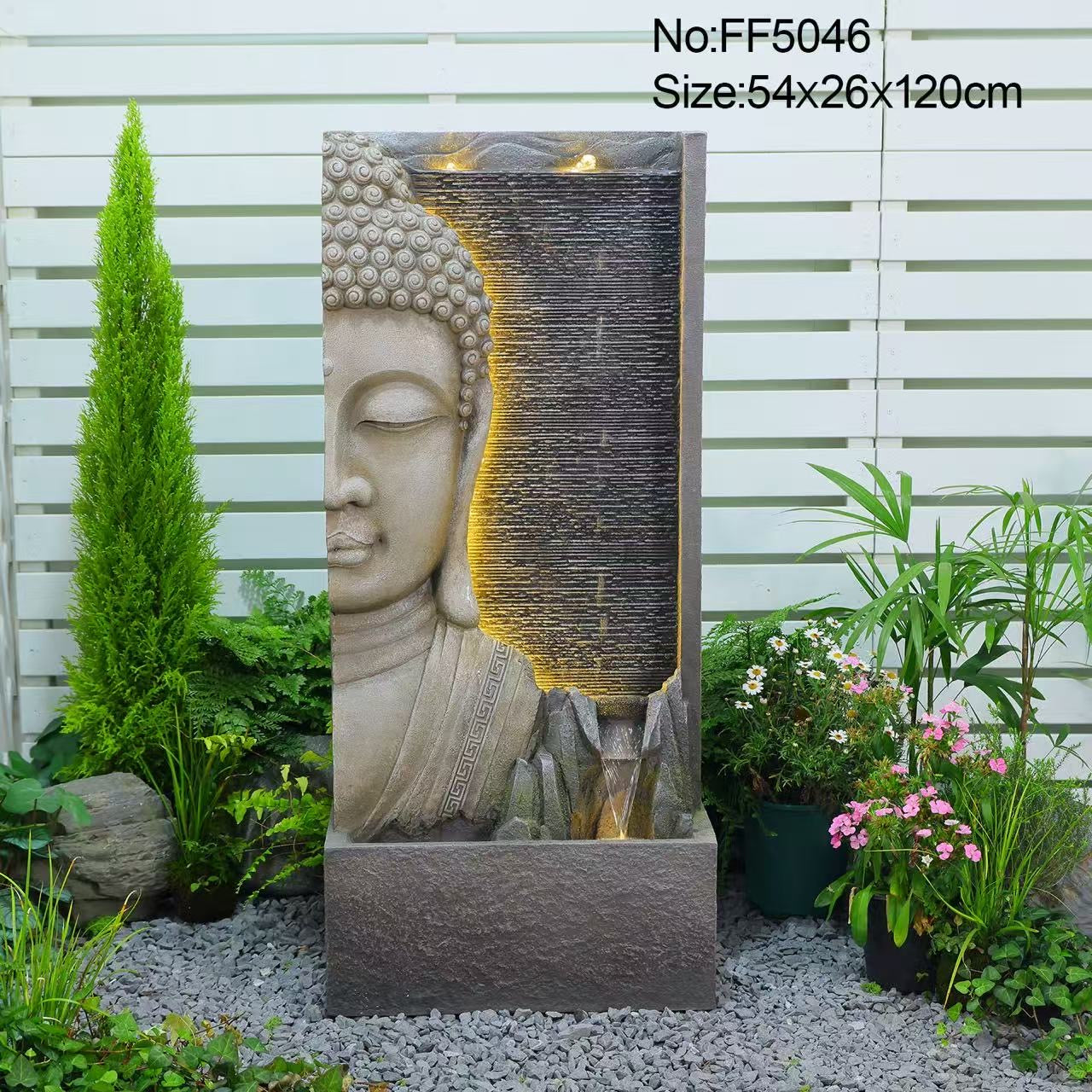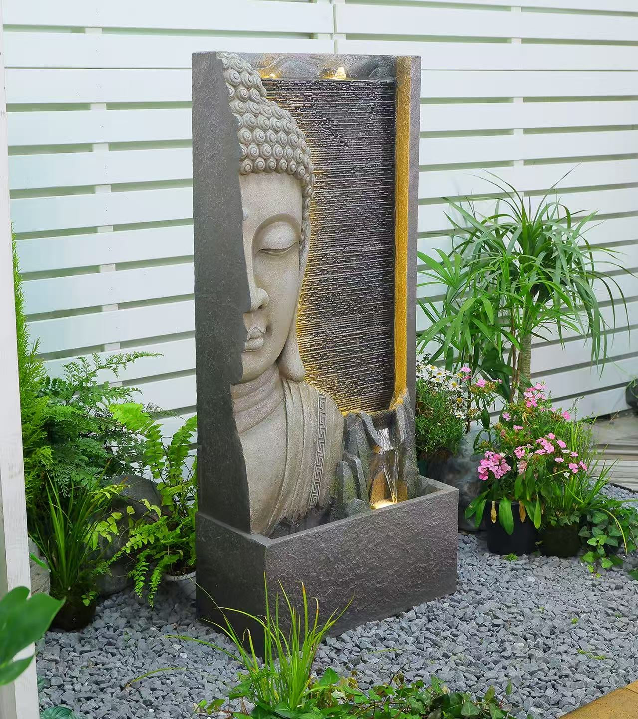 Richessa a depiction of a Zen Fountain with attention to details featuring a serene Buddha Water Wall Feature.