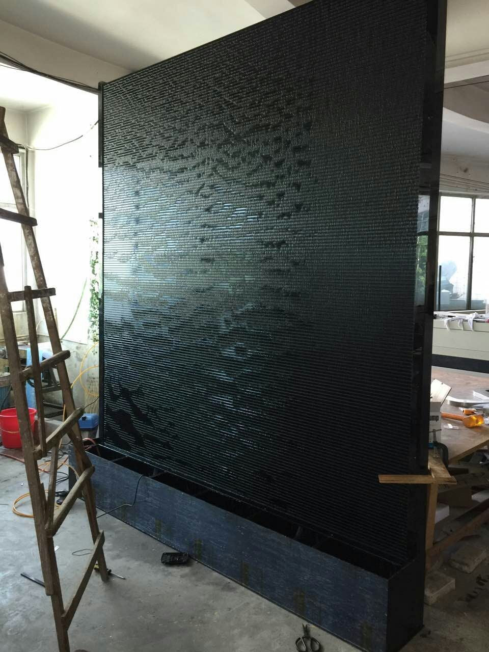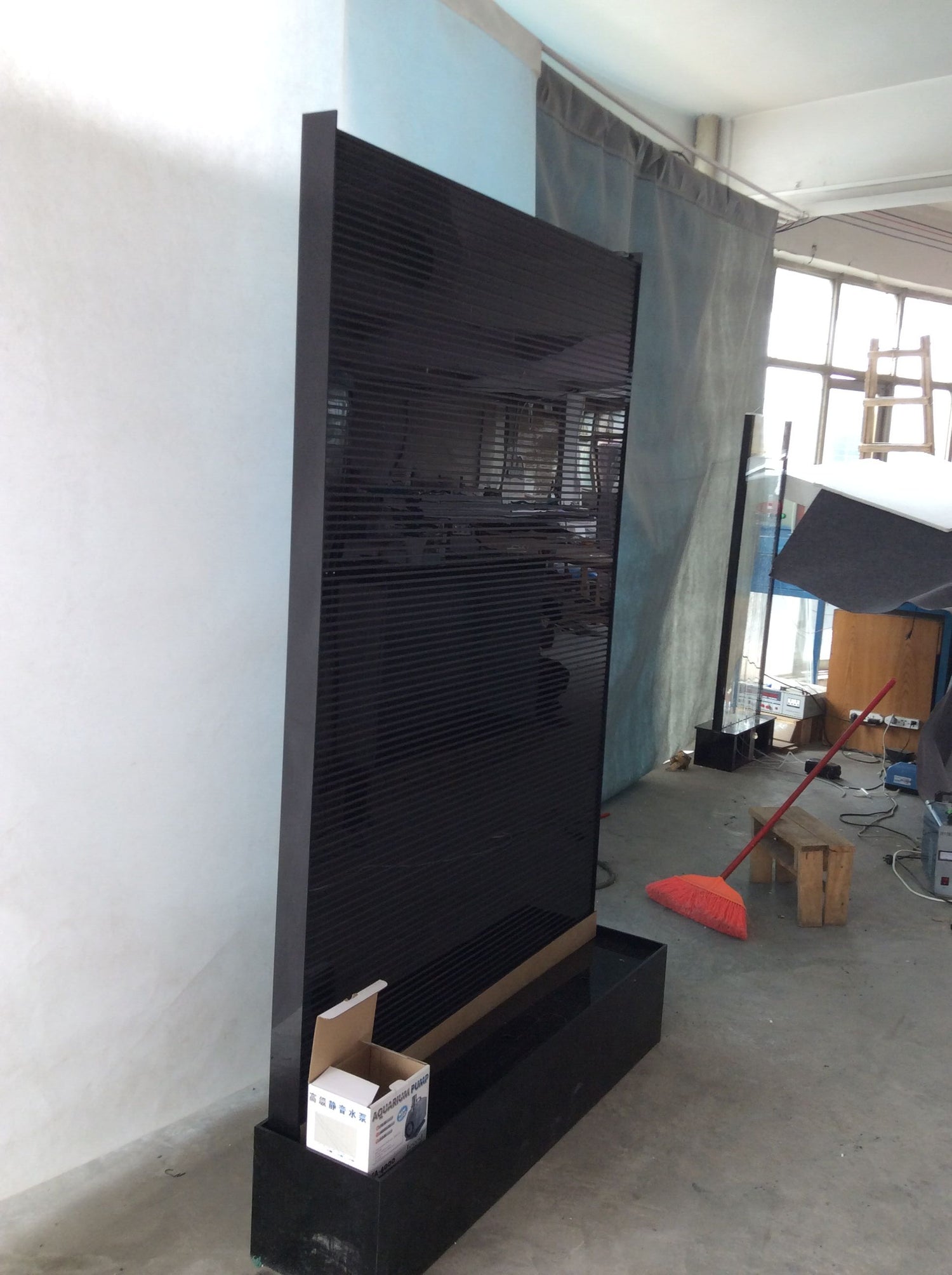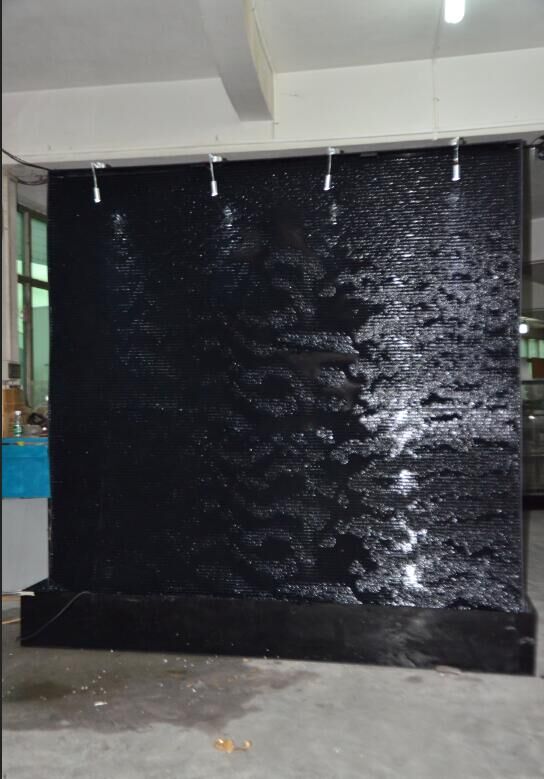 This water fountain can be placed indoor with spot lights placed on the top of the back panel or Outdoor under cover away from the elements where outdoor weather proof spot lights are placed at the base of the water Wall.