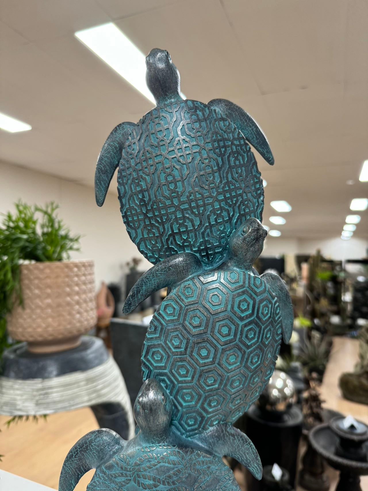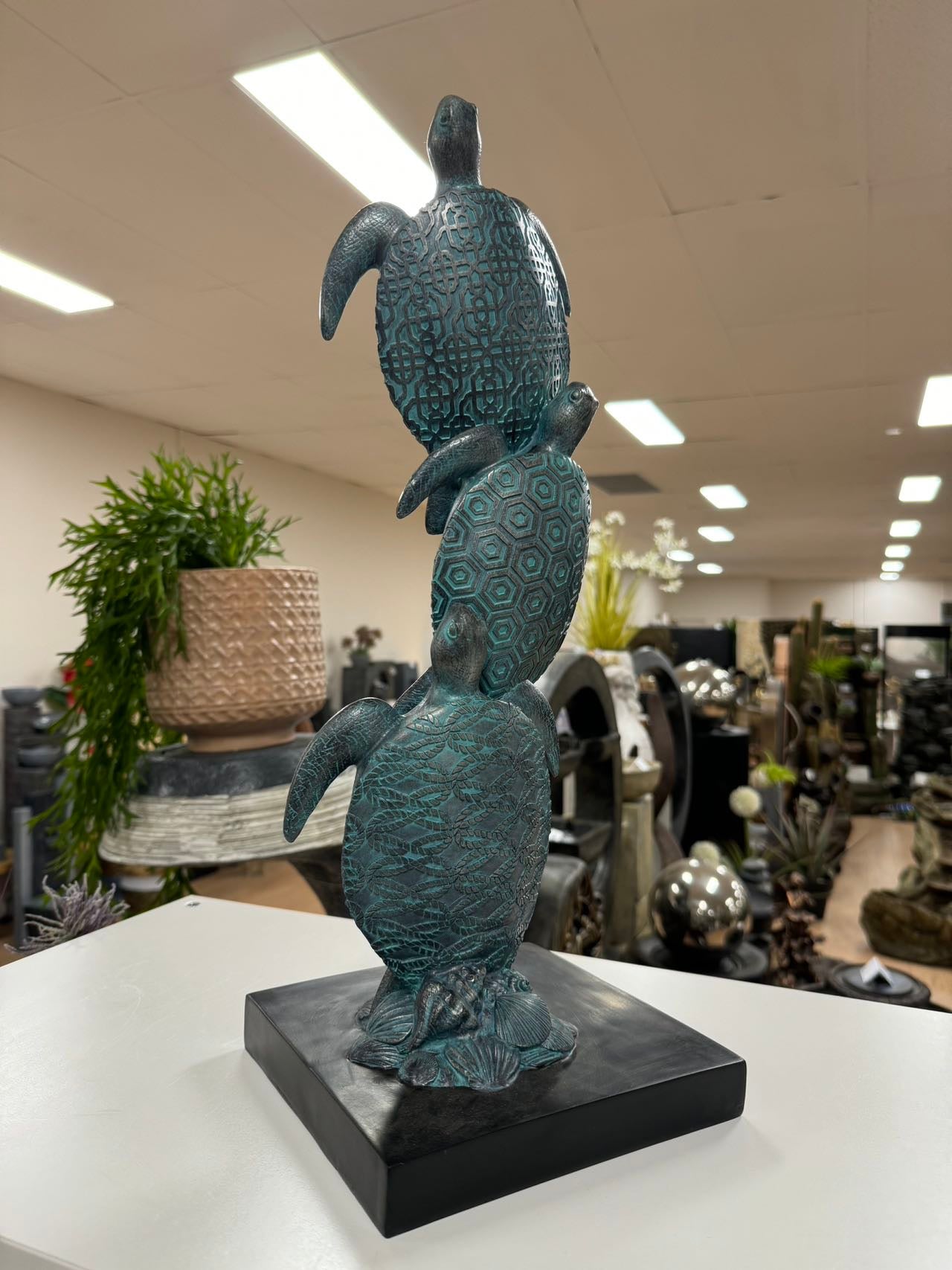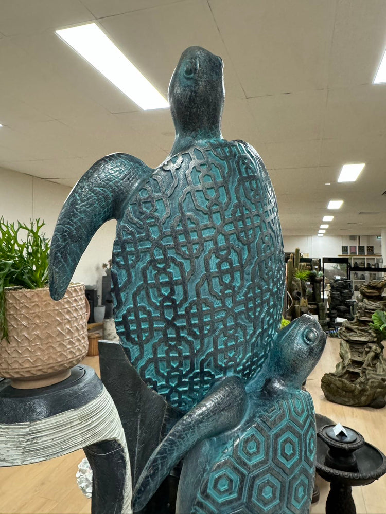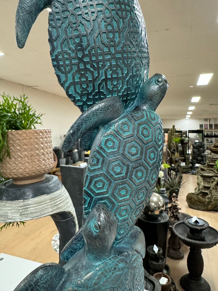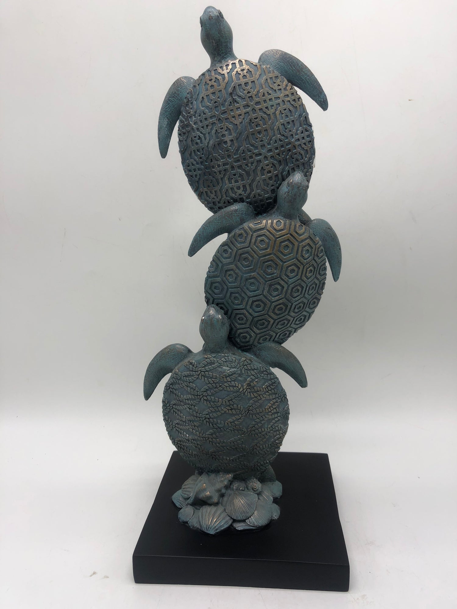 Tortoga Blue Turtle Collection Stacking 3 Blue Turtles on Black Stand