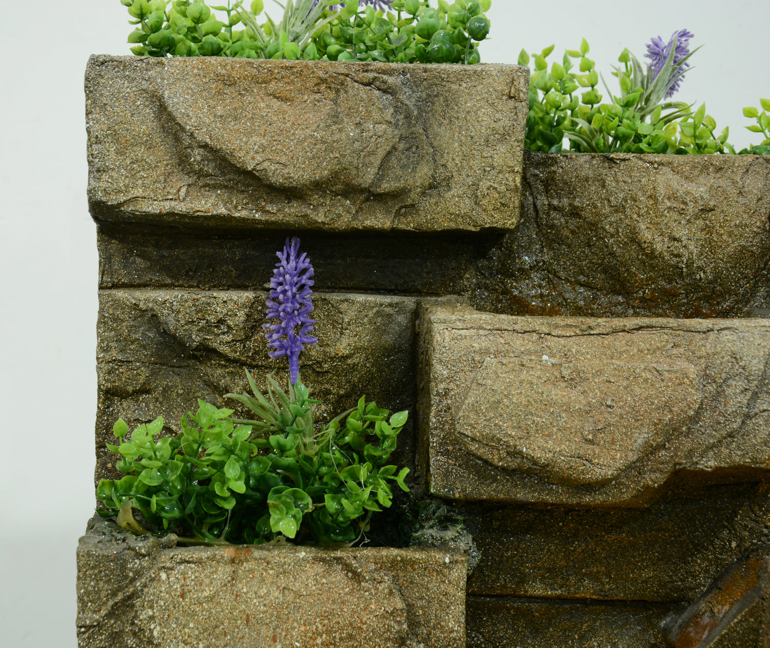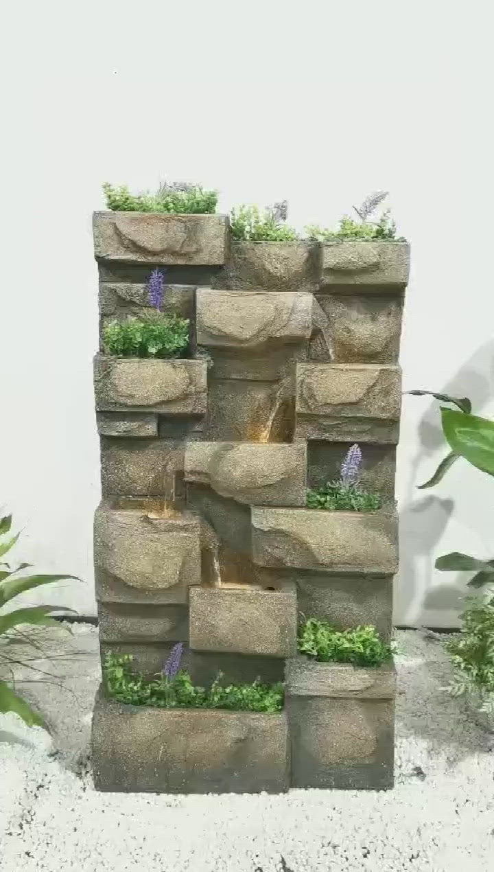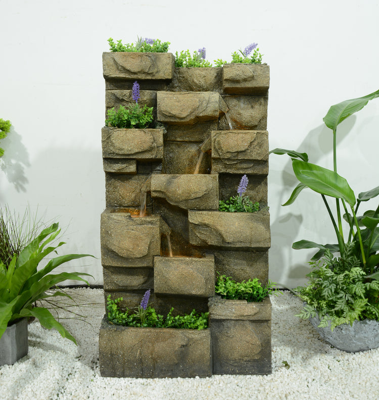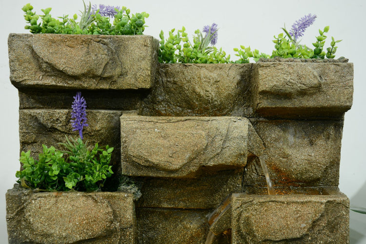 The modern design is based on multi layered levels, each with LED lights & a chute to augment the astonishing water sounds. This sensational look design emulates modern brick walls & gives the impression of a real wall that add art deco & functionality.