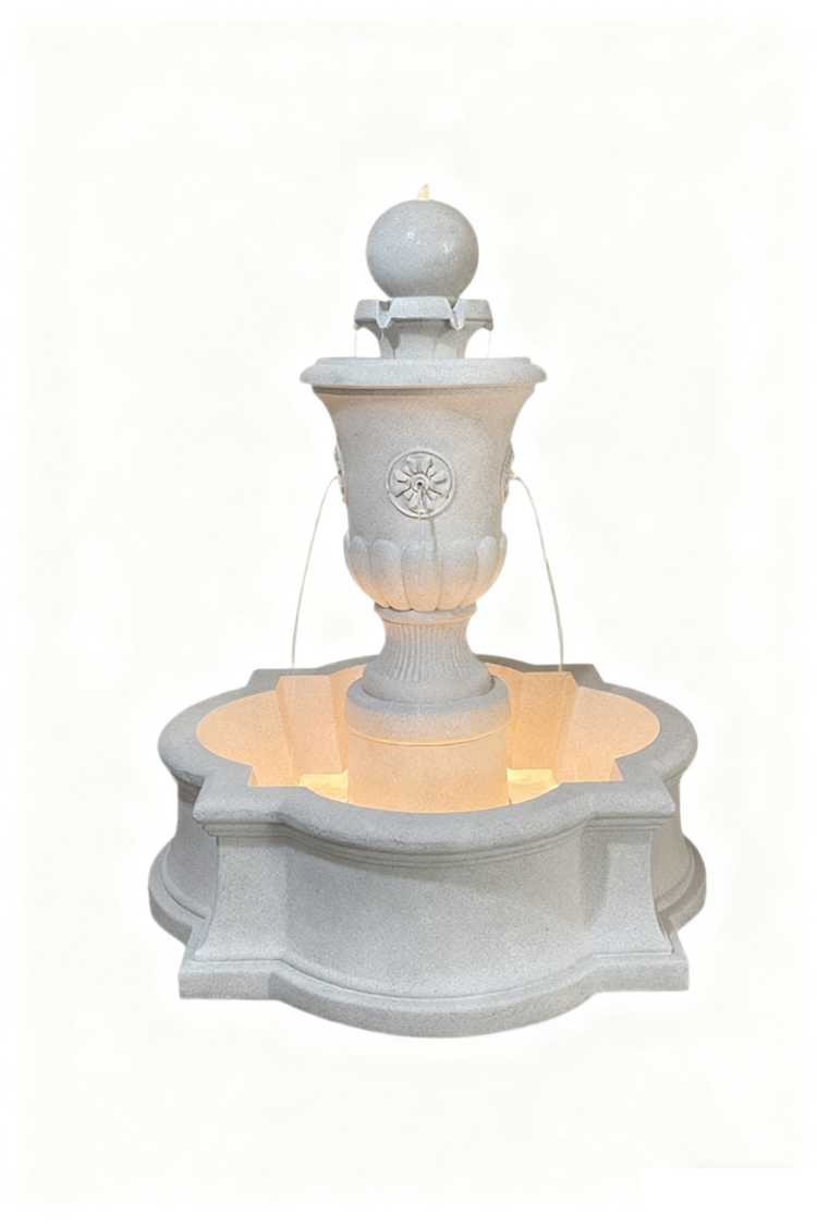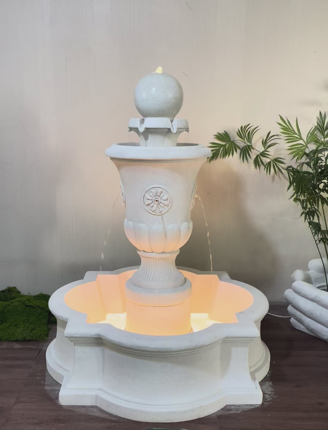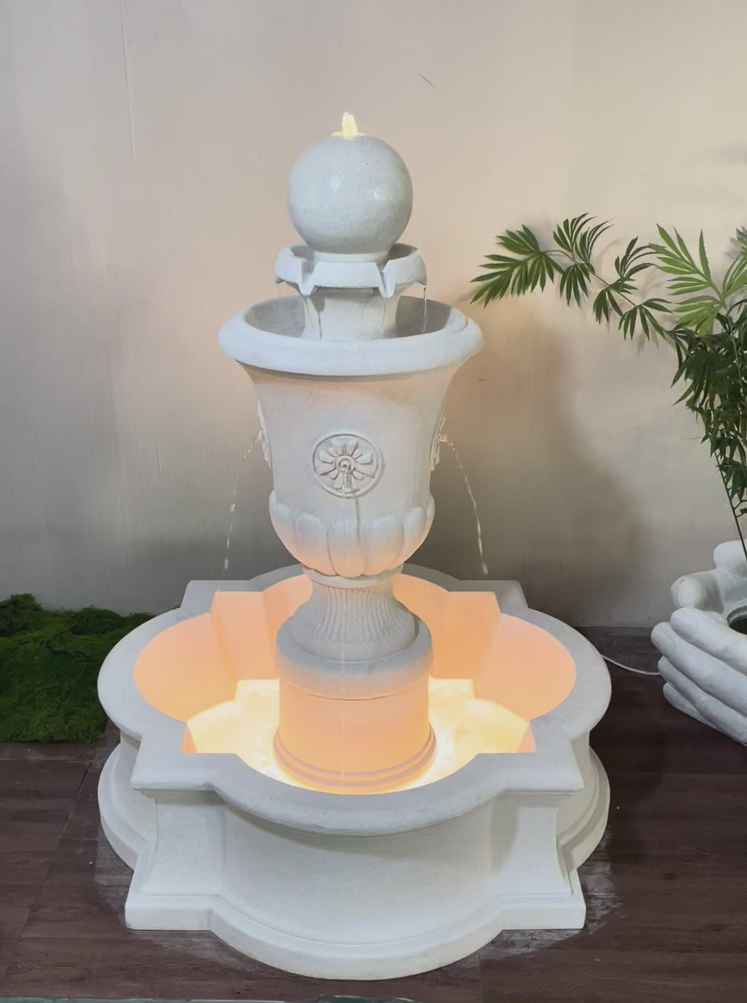 Unique White Tall Fountain with Pond & Lights designed exclusively by our designers in Spain. Launched for the first time worldwide in Sydney before enrolling this sensational new fountain worldwide.